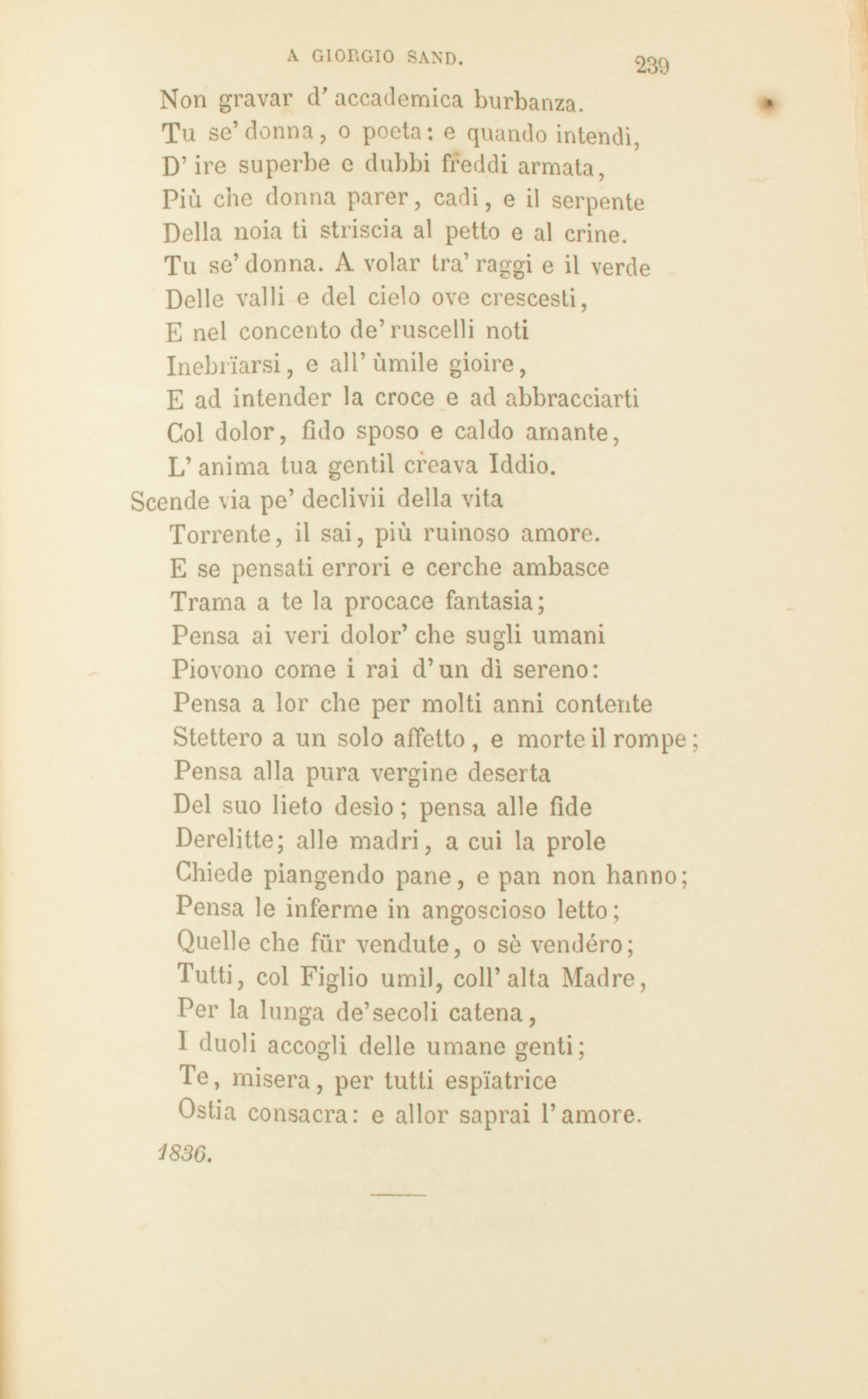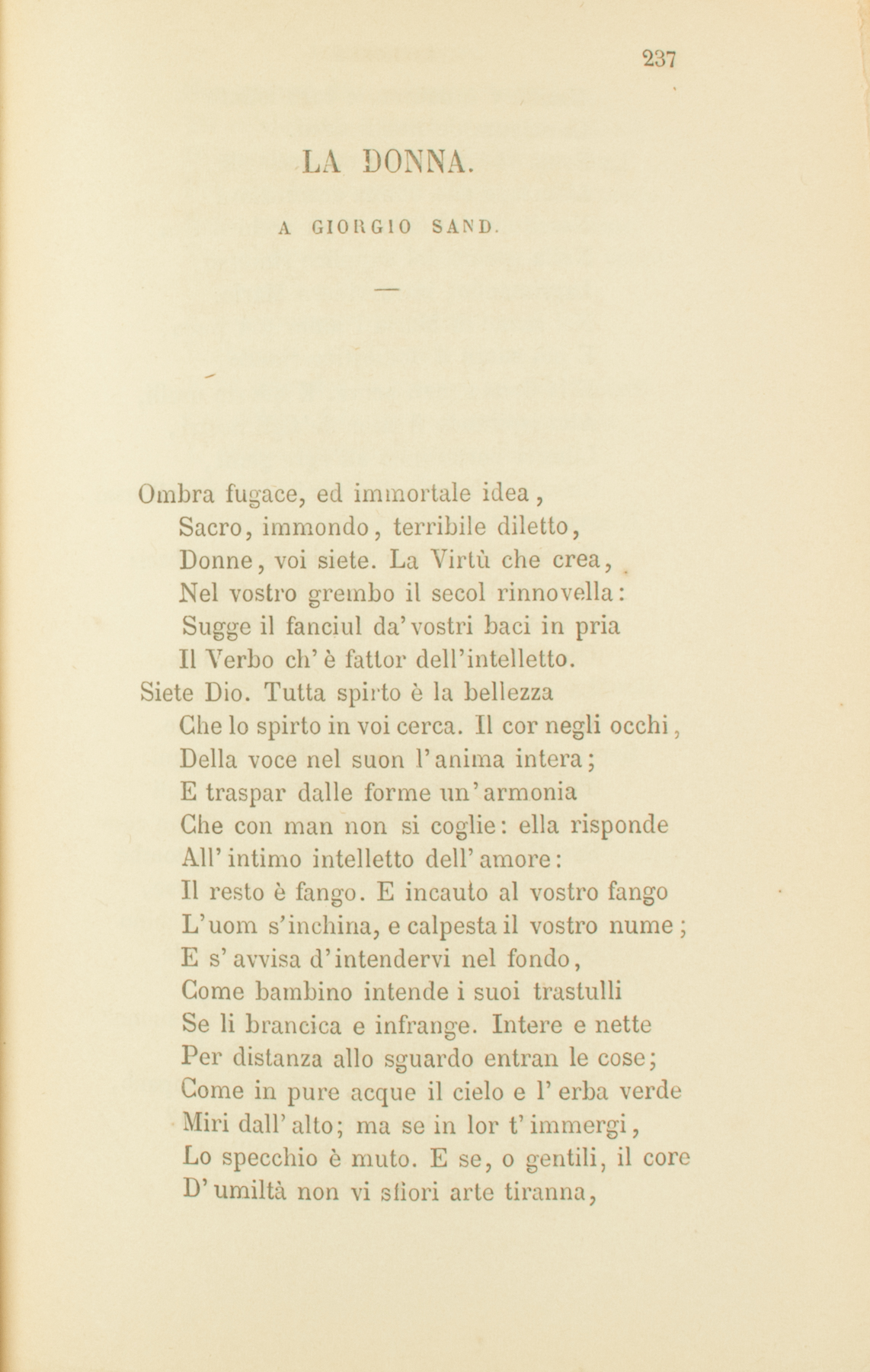 La donna. A Giorgio Sand
