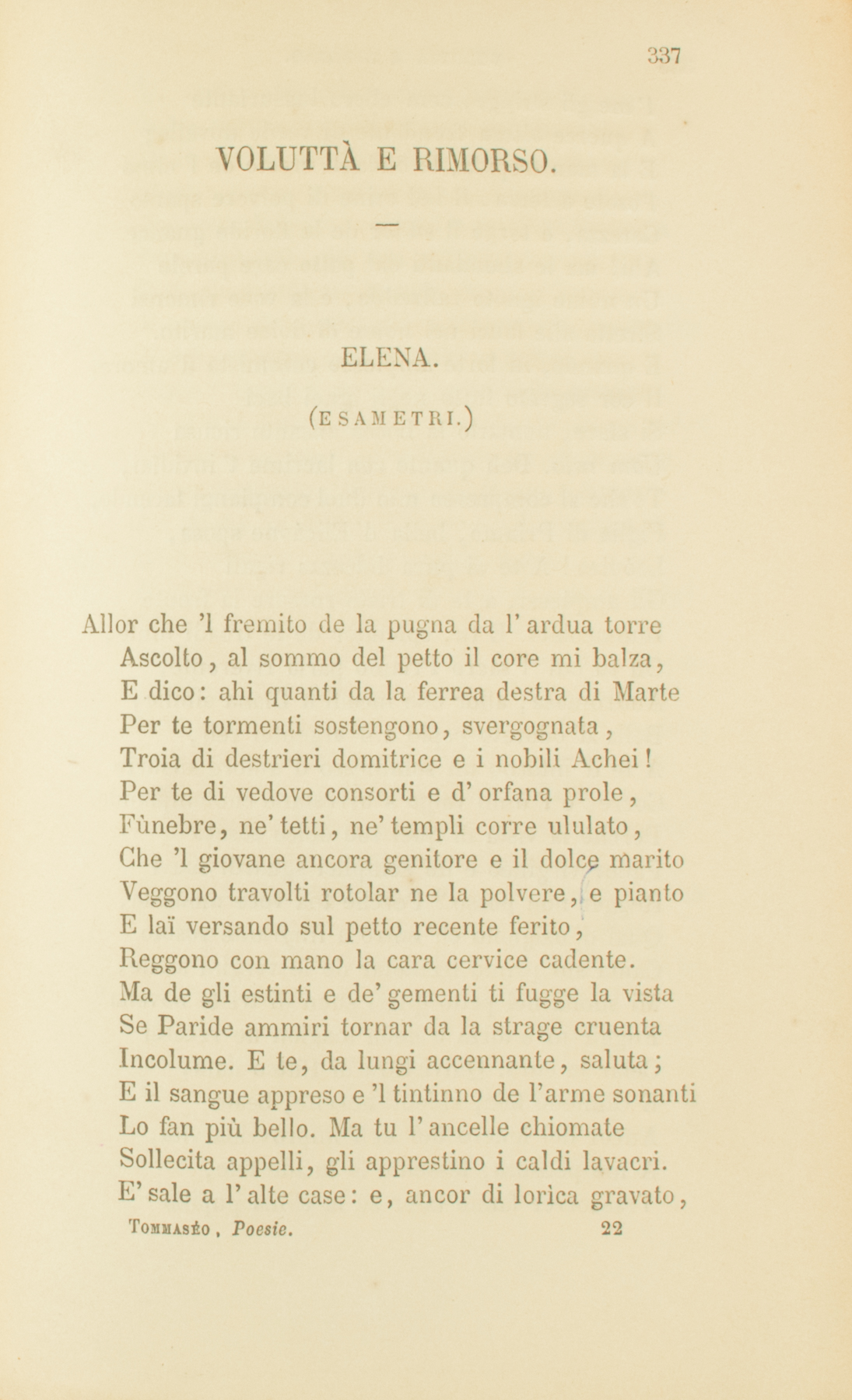 Voluttà e rimorso. Elena. (Esametri)