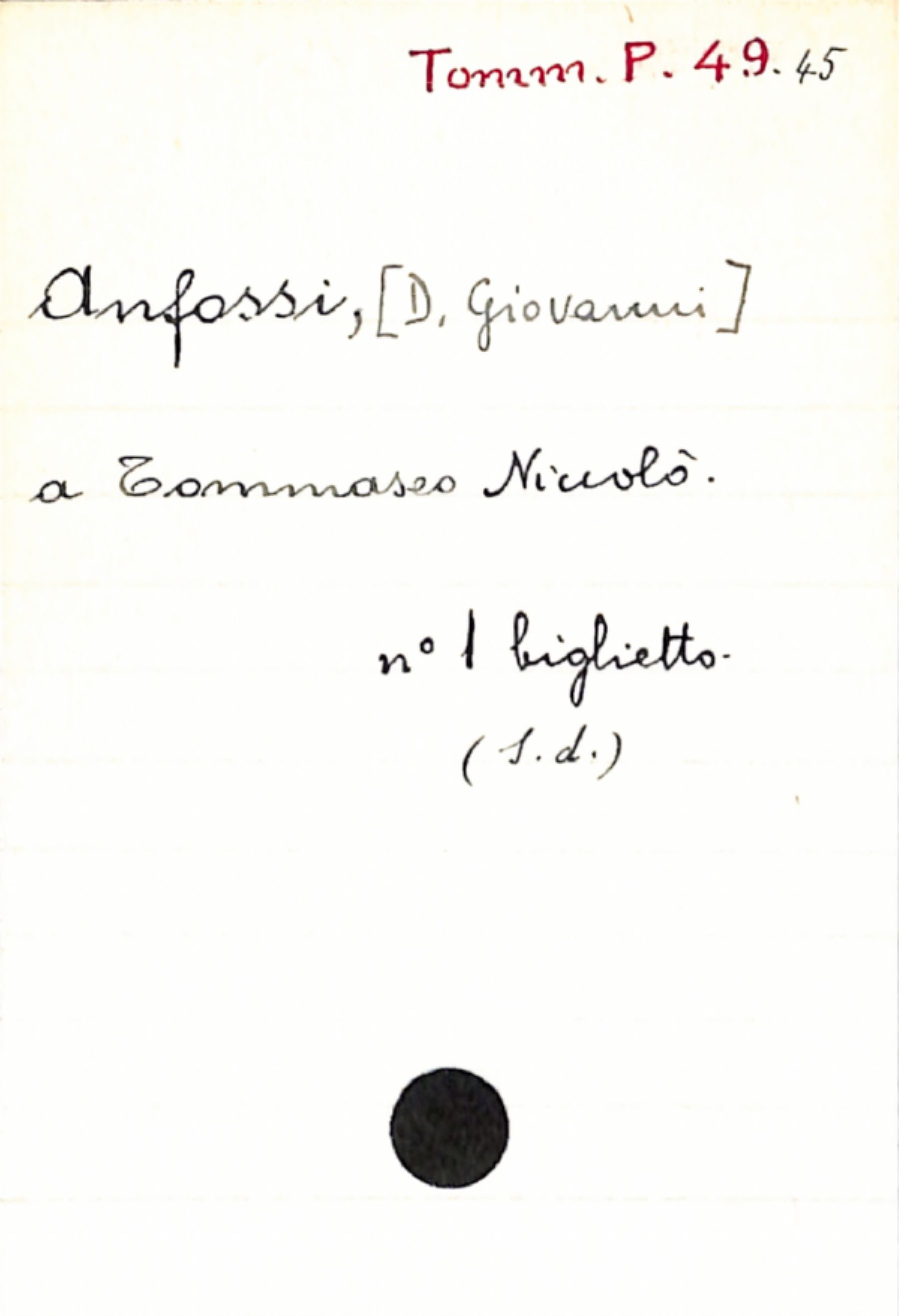 Fascicolo Anfossi, [D. Giovanni] a Tommaseo, Niccolò
