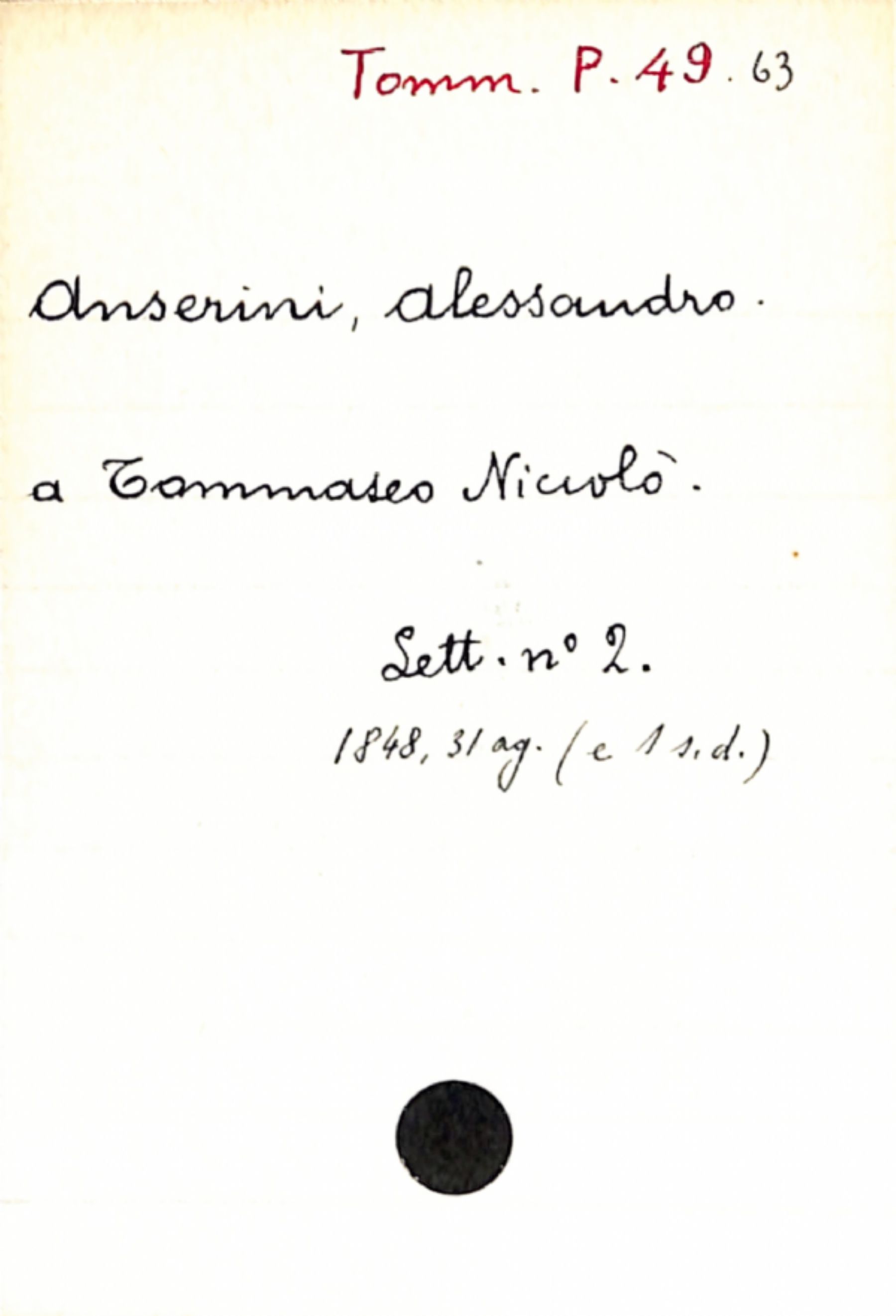 Fascicolo Anserini, Alessandro a Tommaseo, Niccolò