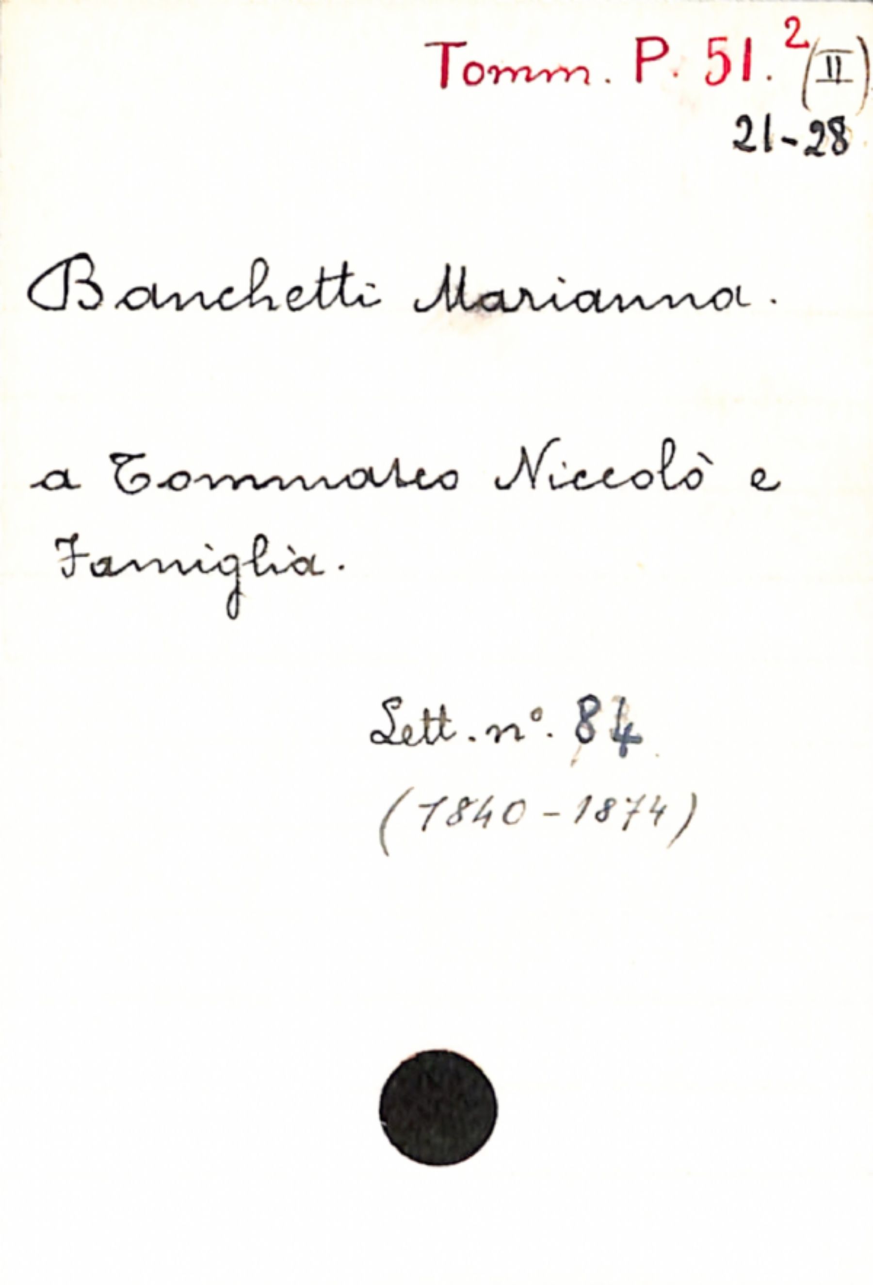 • Banchetti, Marianna a Tommaseo Niccolò e famiglia