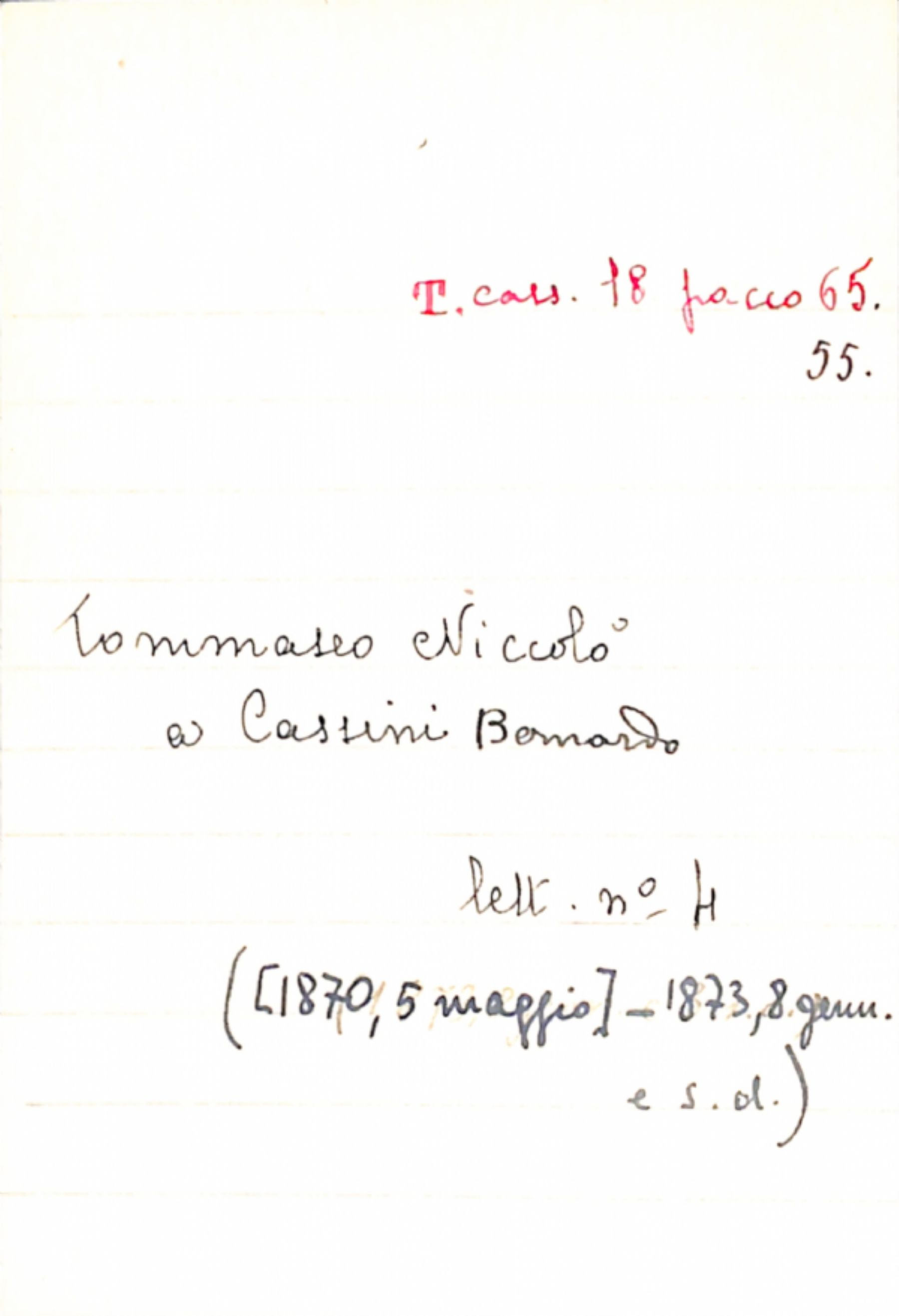 Fascicolo Tommaseo, Niccolò a Cassini, Bernardo