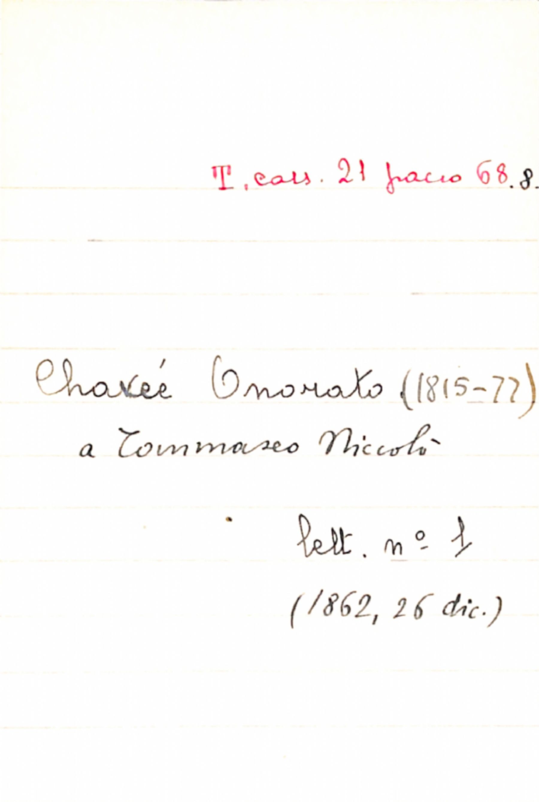 Fascicolo Chavée, Onorato a Tommaseo, Niccolò