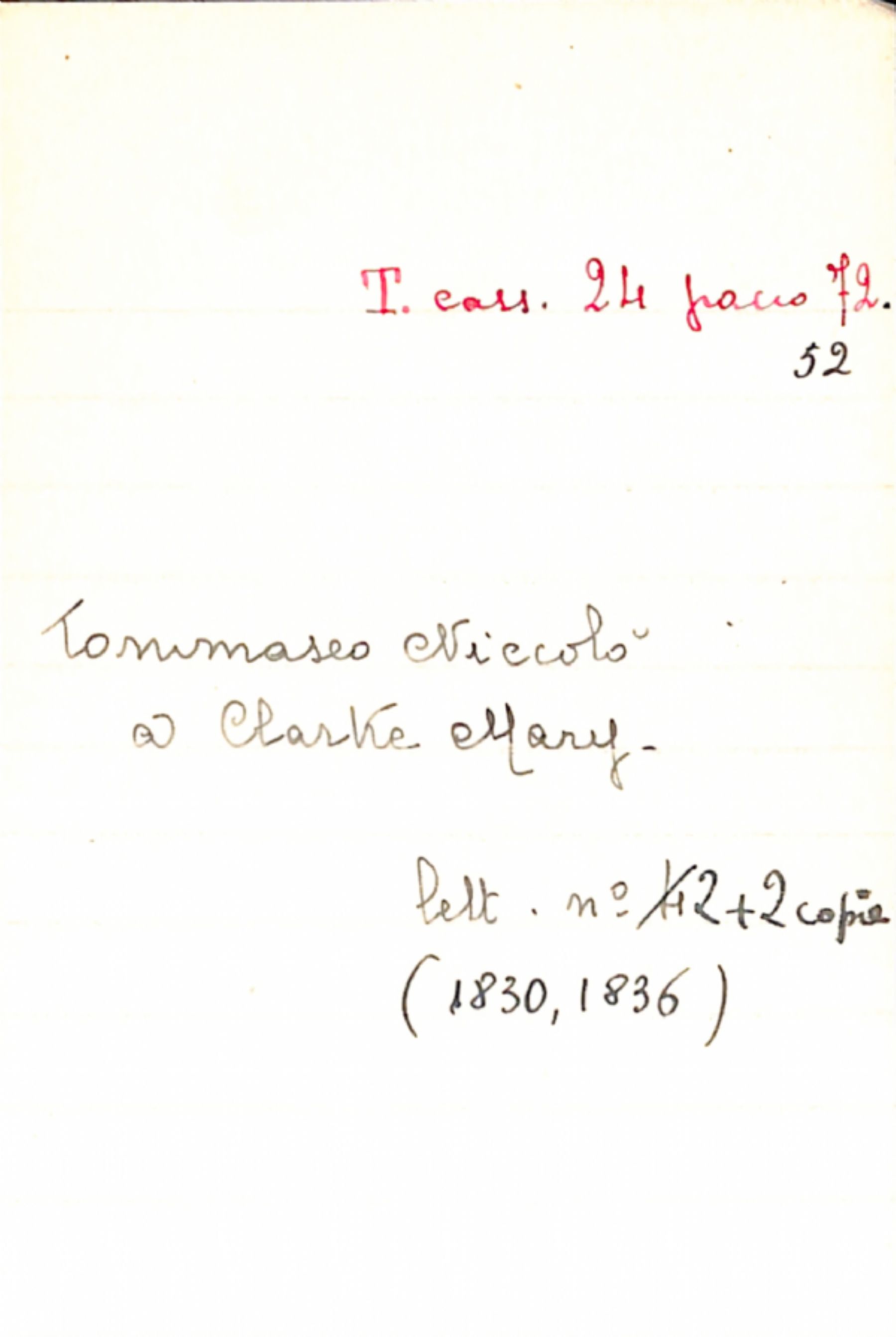 Fascicolo Tommaseo, Niccolò a Clarke, Mary