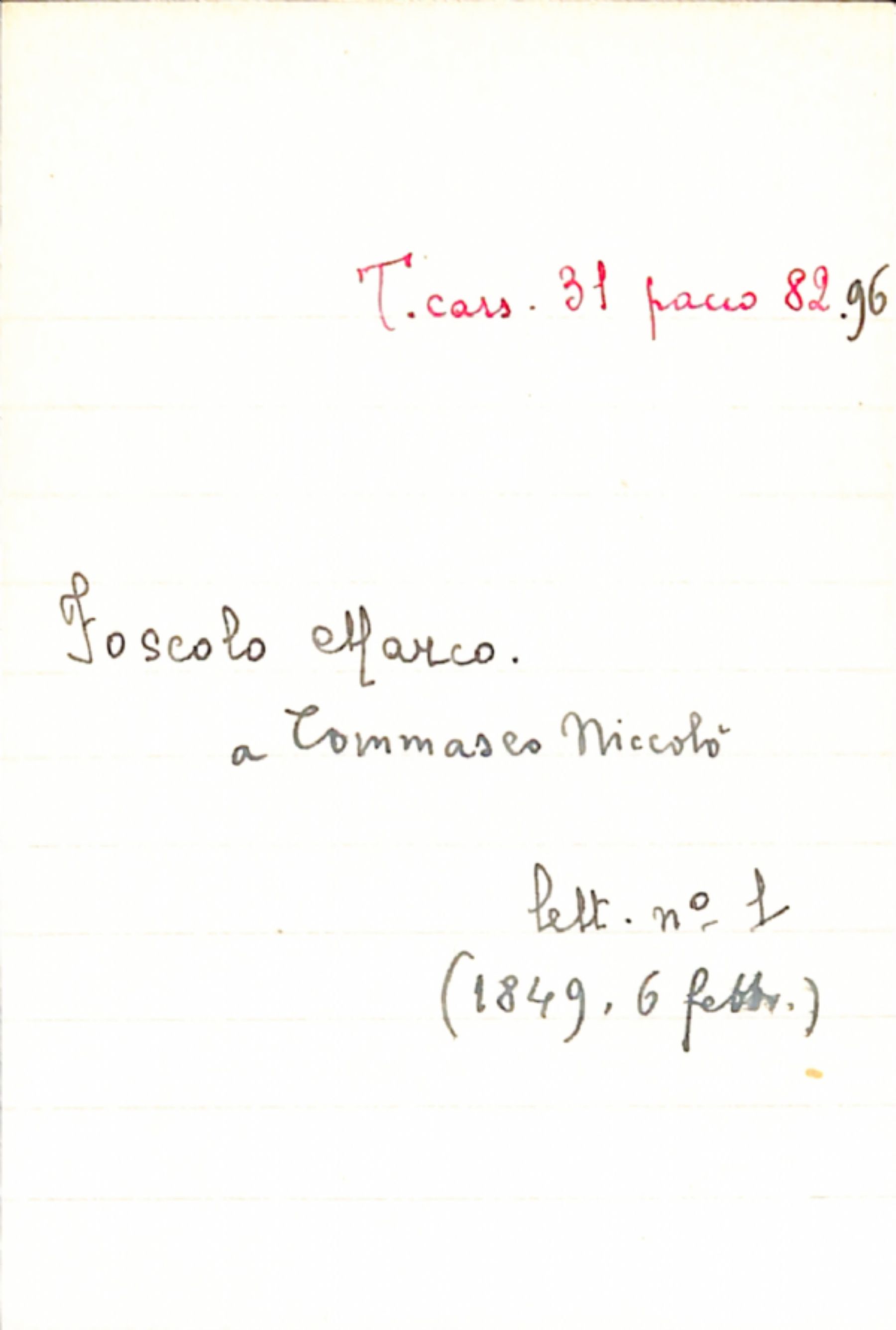 Fascicolo Foscolo, Marco a Tommaseo, Niccolò