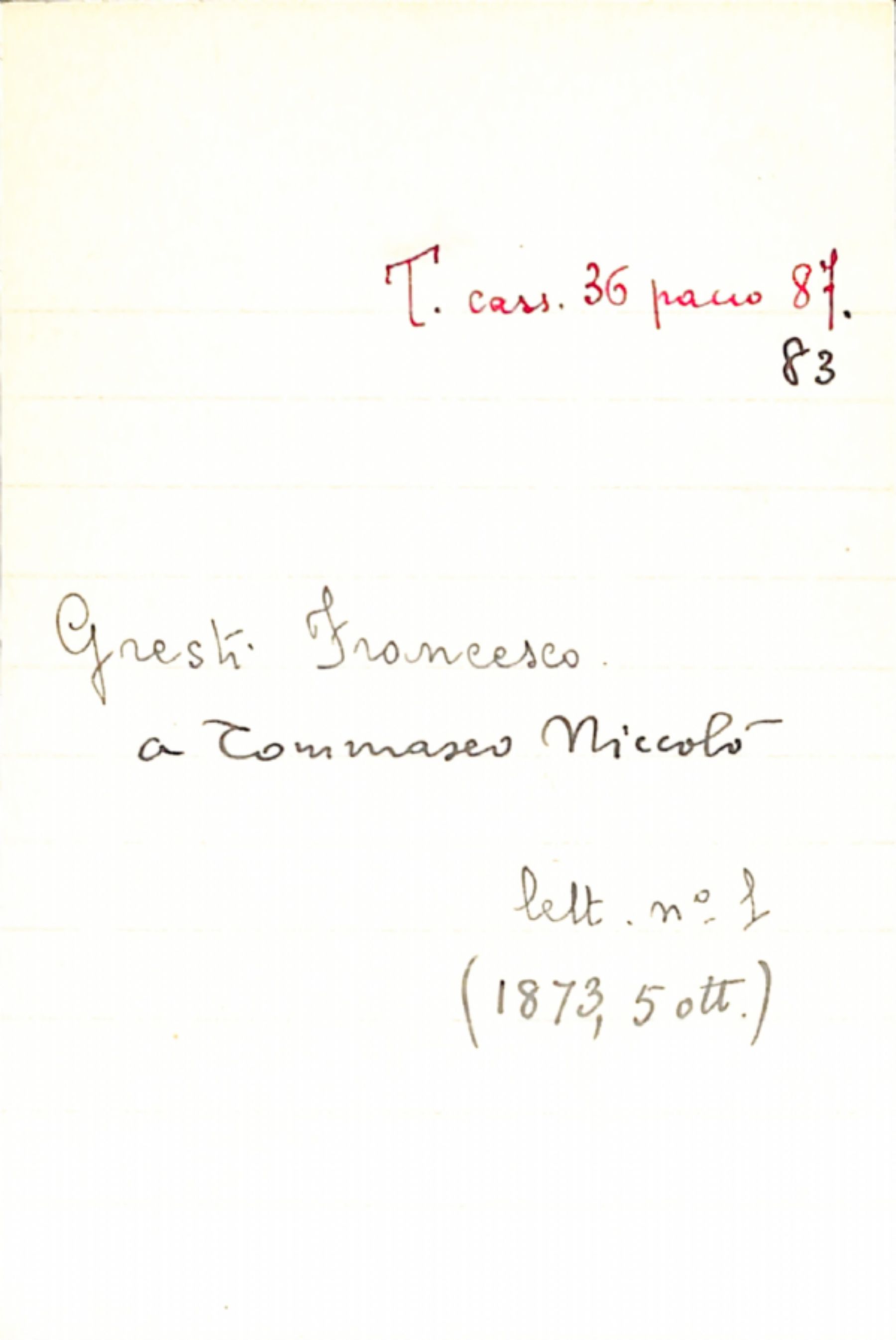 Fascicolo Gresti, Francesco a Tommaseo, Niccolò