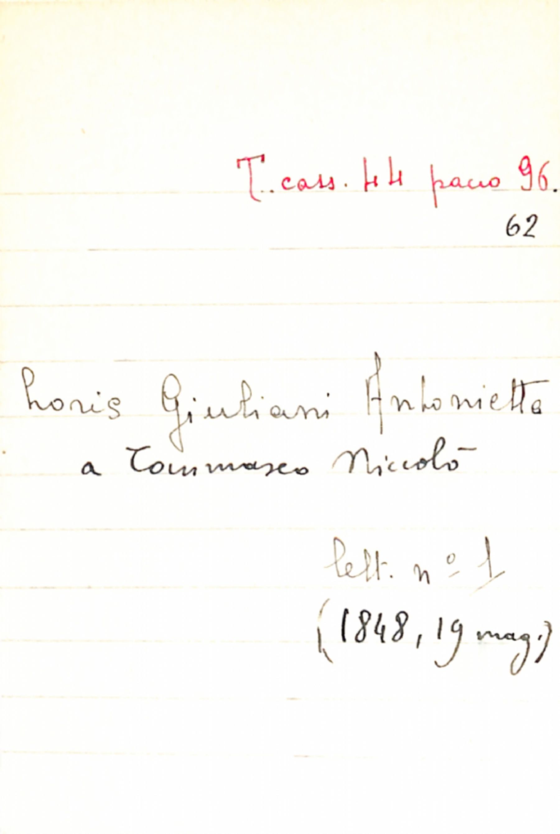 Fascicolo Loris Giuliani, Antonietta a Tommaseo, Niccolò
