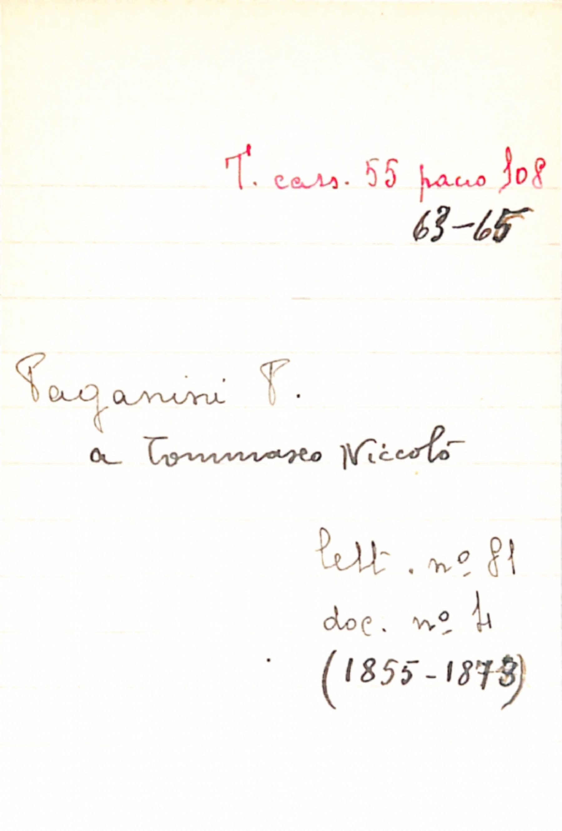 Fascicolo Paganini, P. a Tommaseo, Niccolò