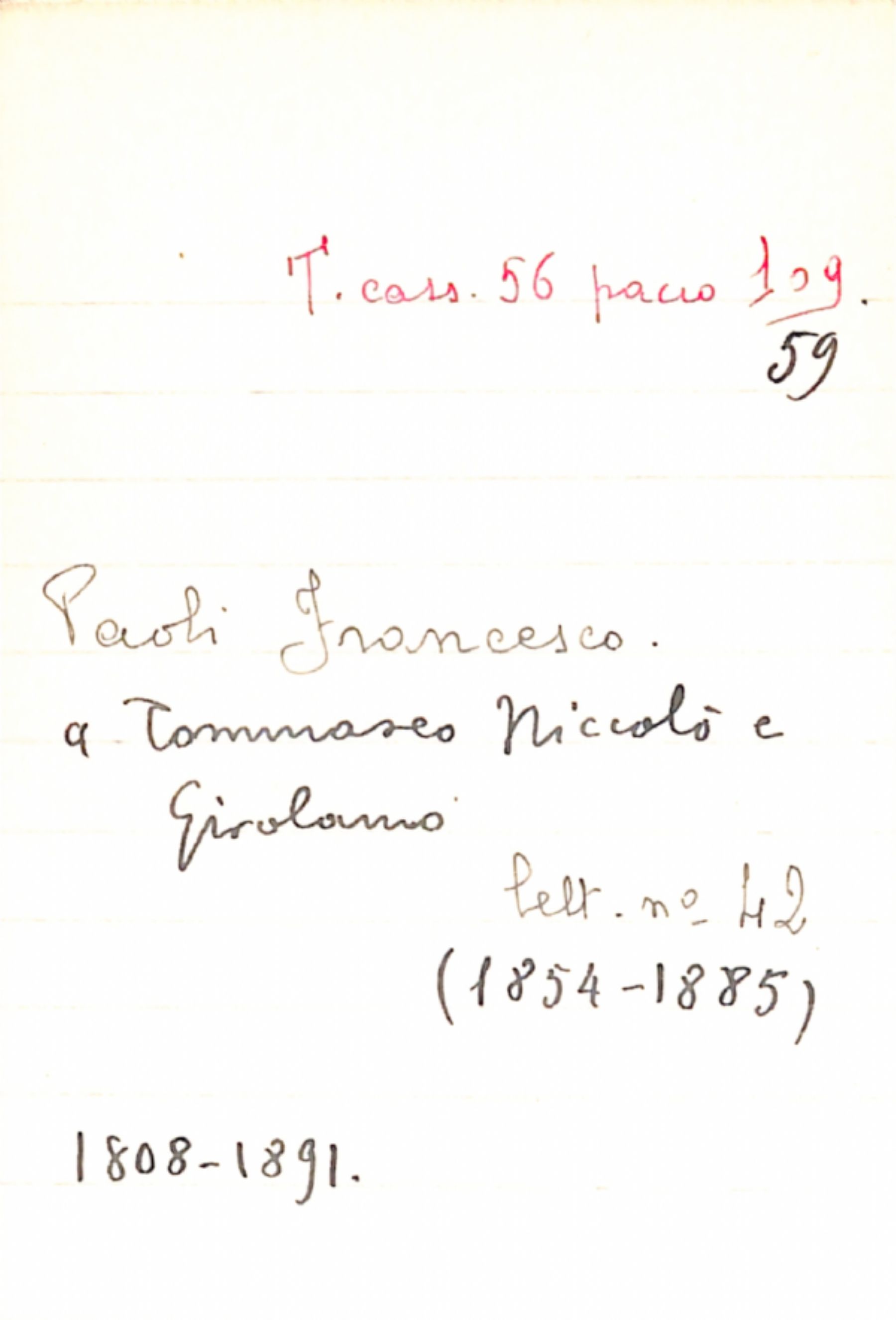 Fascicolo Paoli, Francesco a Tommaseo, Niccolò; Tommaseo, Girolamo