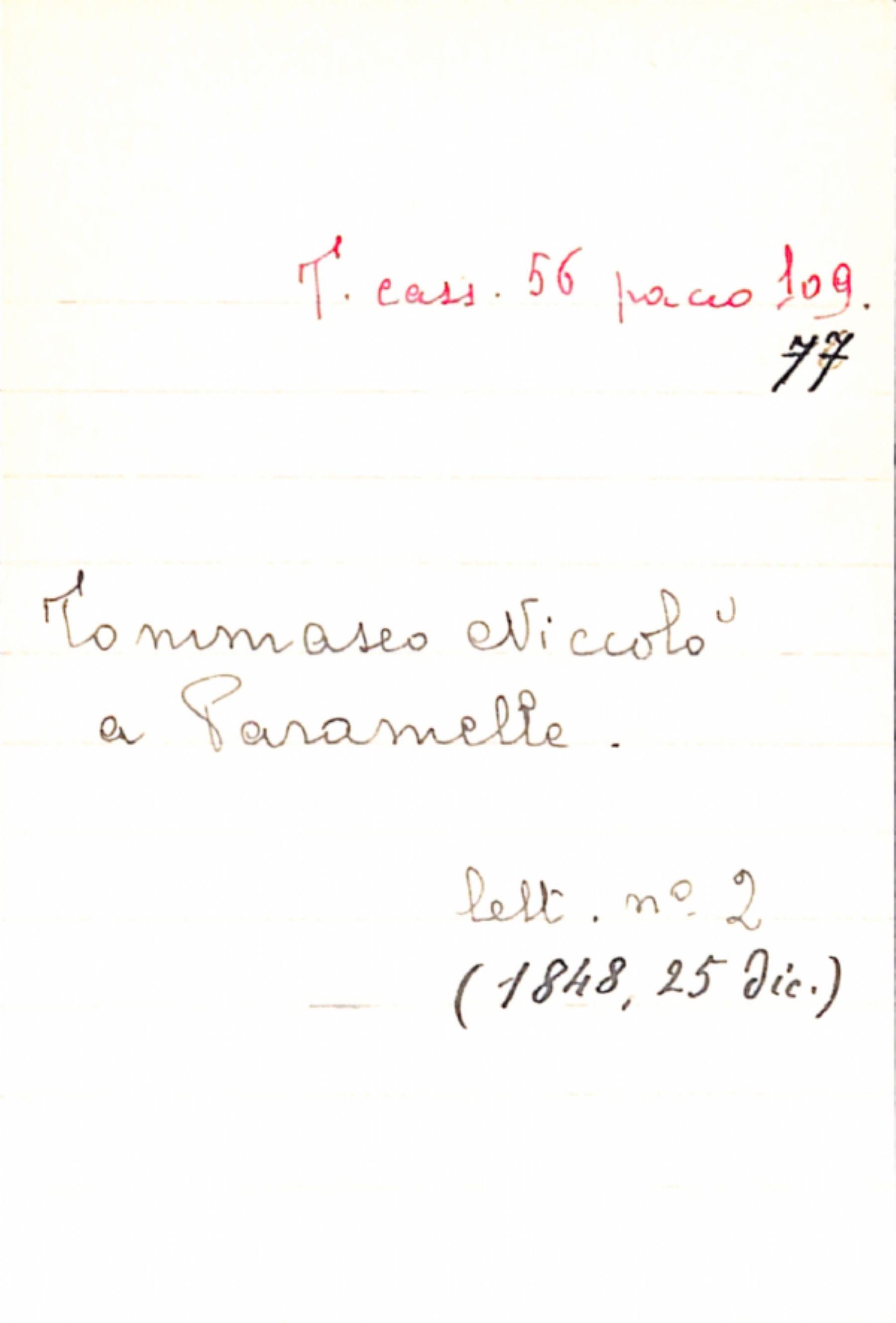 Fascicolo Tommaseo, Niccolò a Paramelle