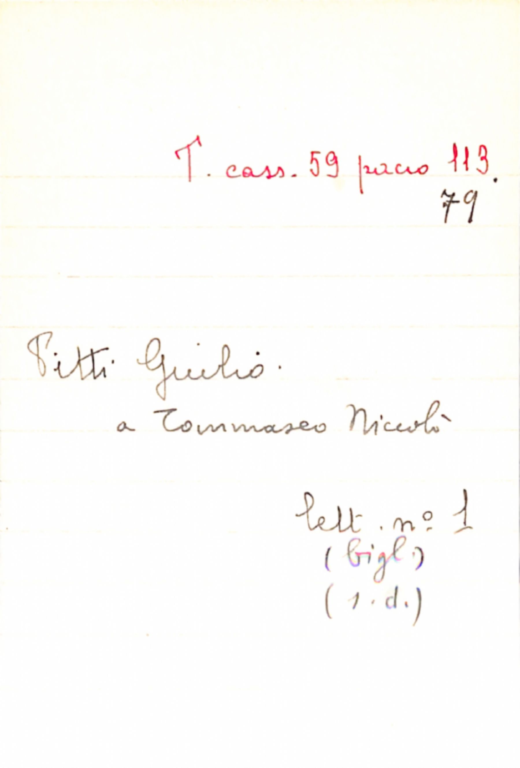 Fascicolo Pitti, Giulio a Tommaseo, Niccolò