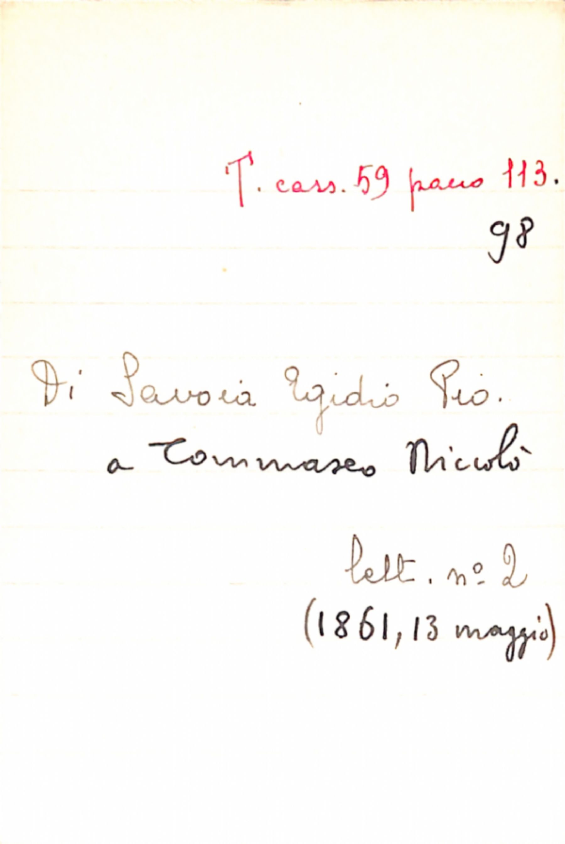 Fascicolo Di Savoia, Egidio Pio a Tommaseo, Niccolò