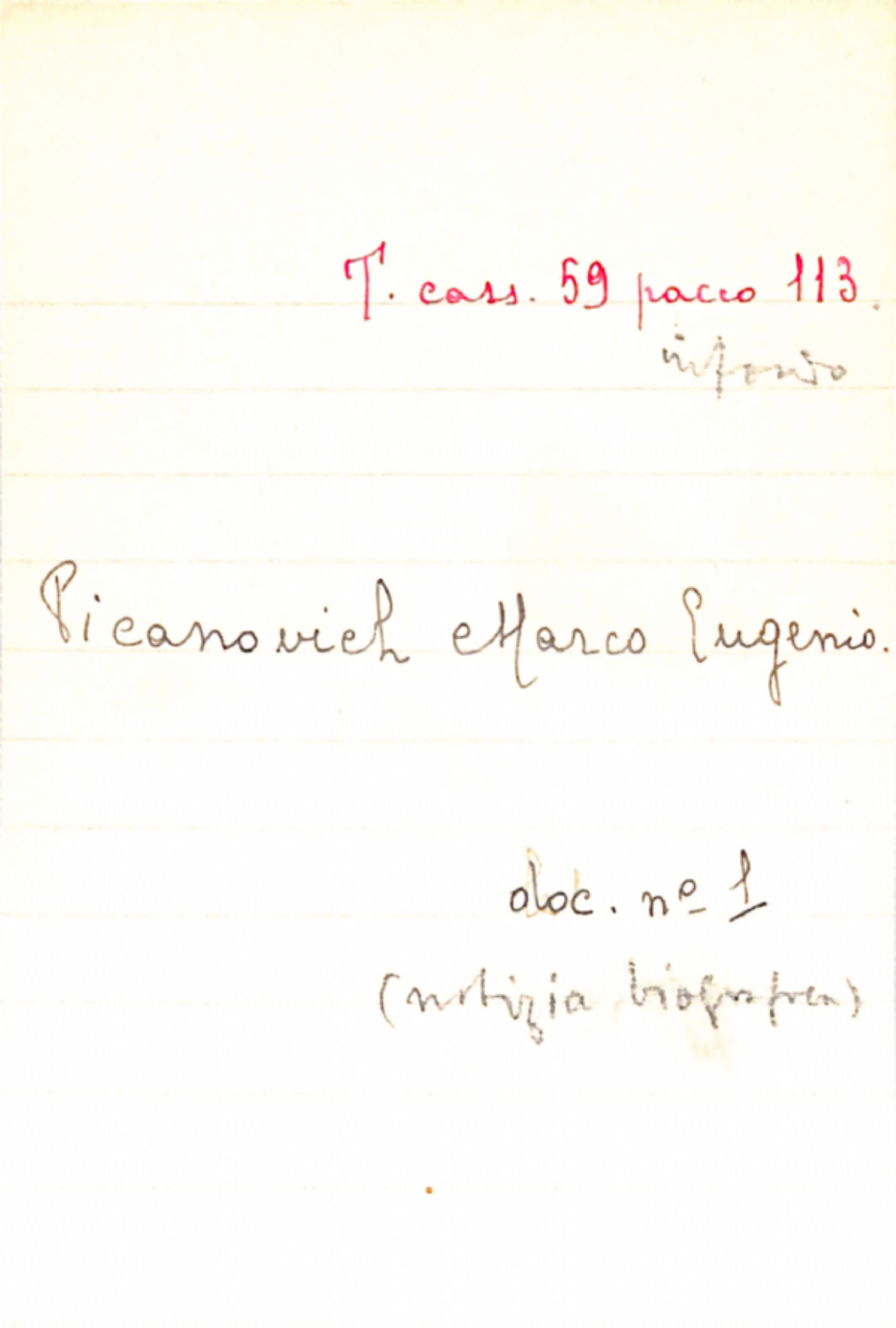 Fascicolo Picanovich, Marco Eugenio a [senza destinatario]