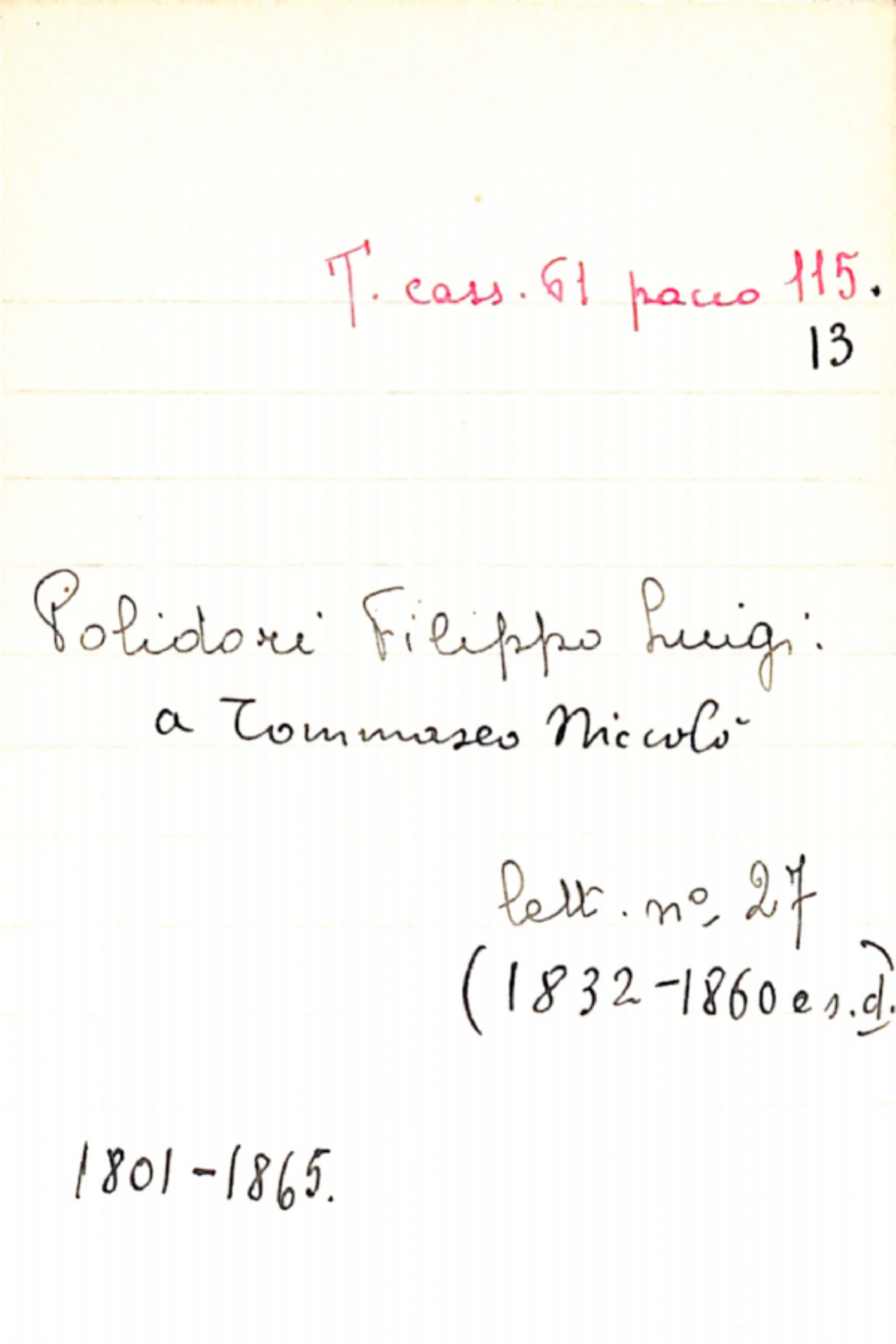 Fascicolo Polidori, Filippo Luigi a Tommaseo, Niccolò