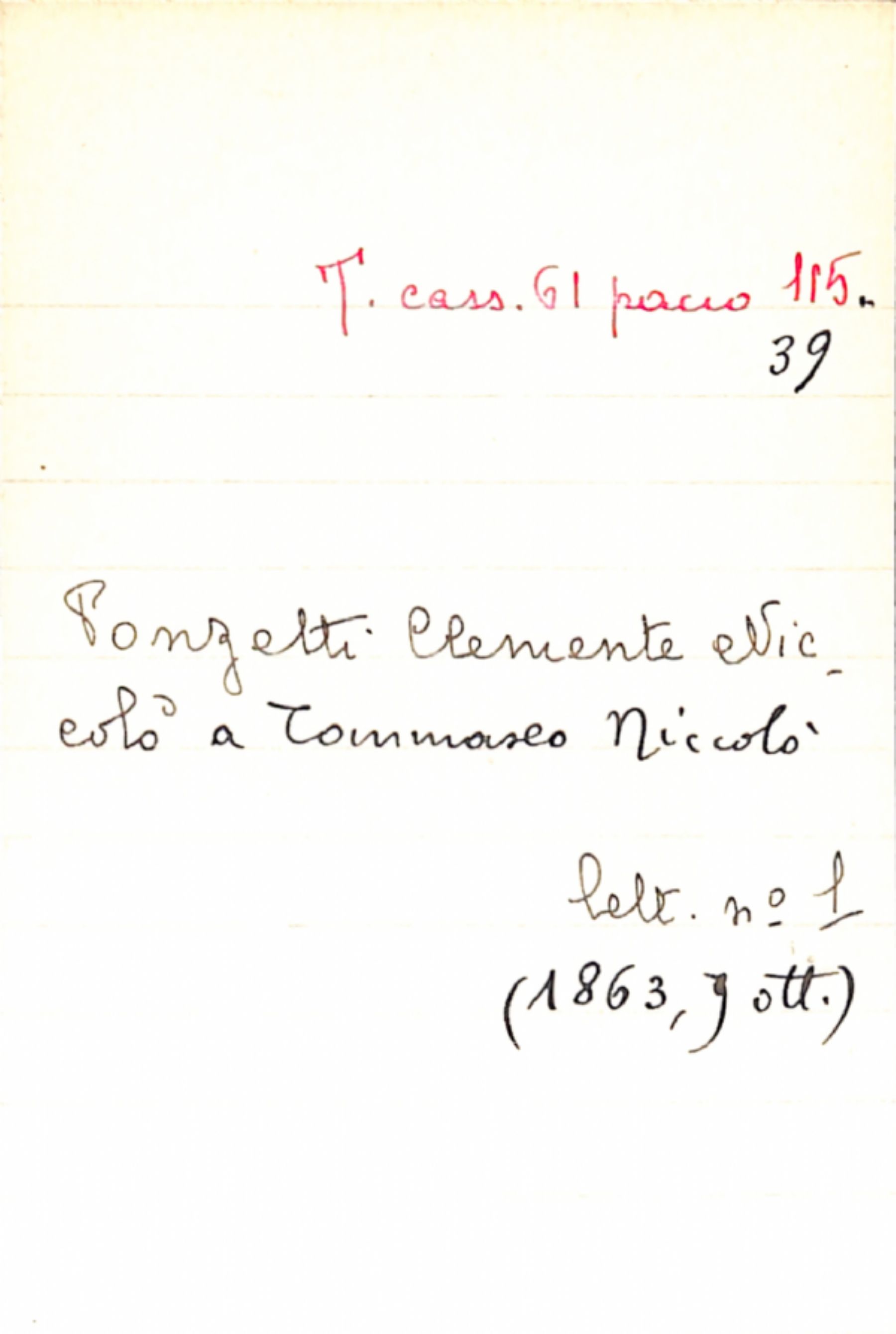 Fascicolo Ponzetti, Clemente Niccolò a Tommaseo, Niccolò