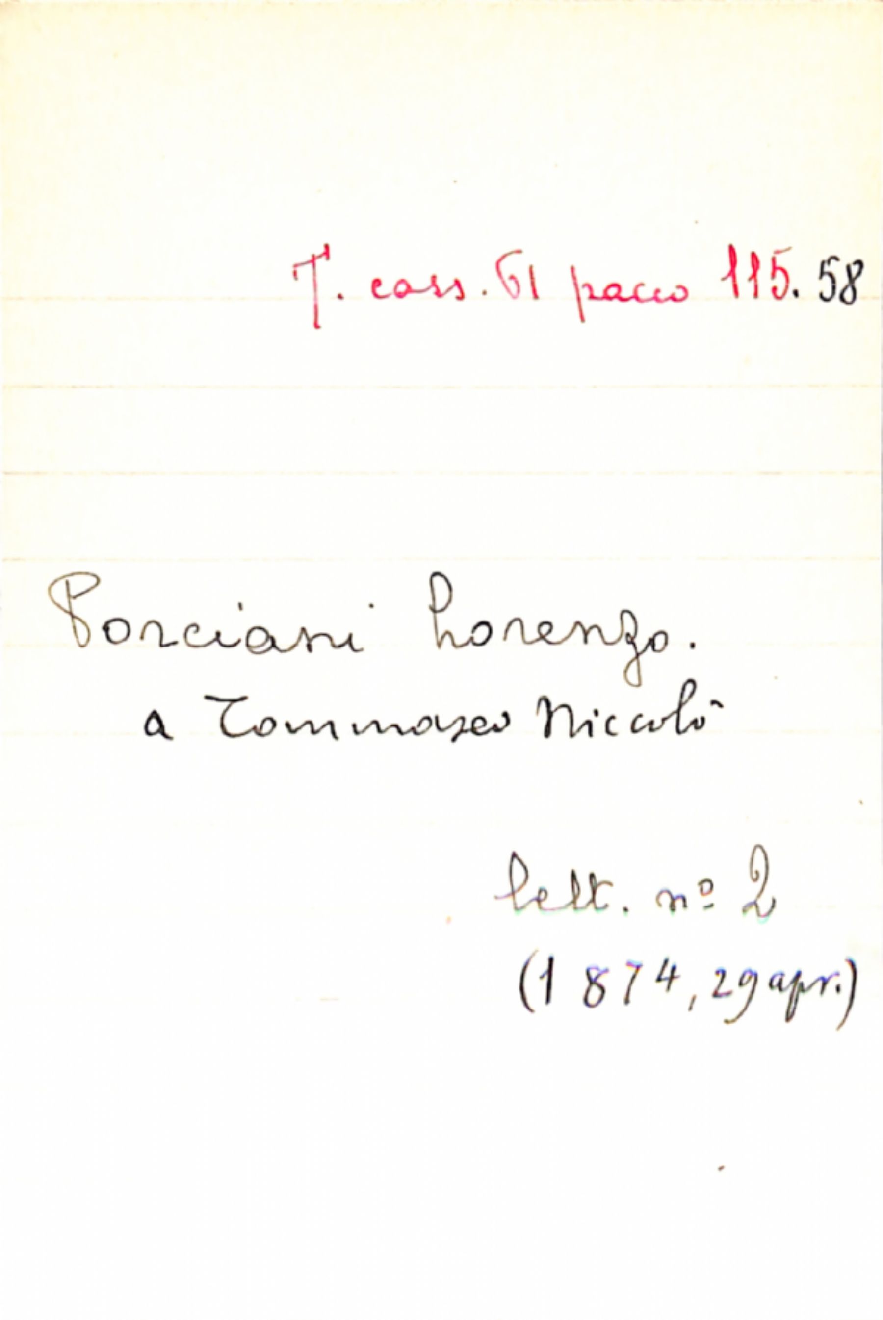 Fascicolo Porciani, Lorenzo a Tommaseo, Niccolò