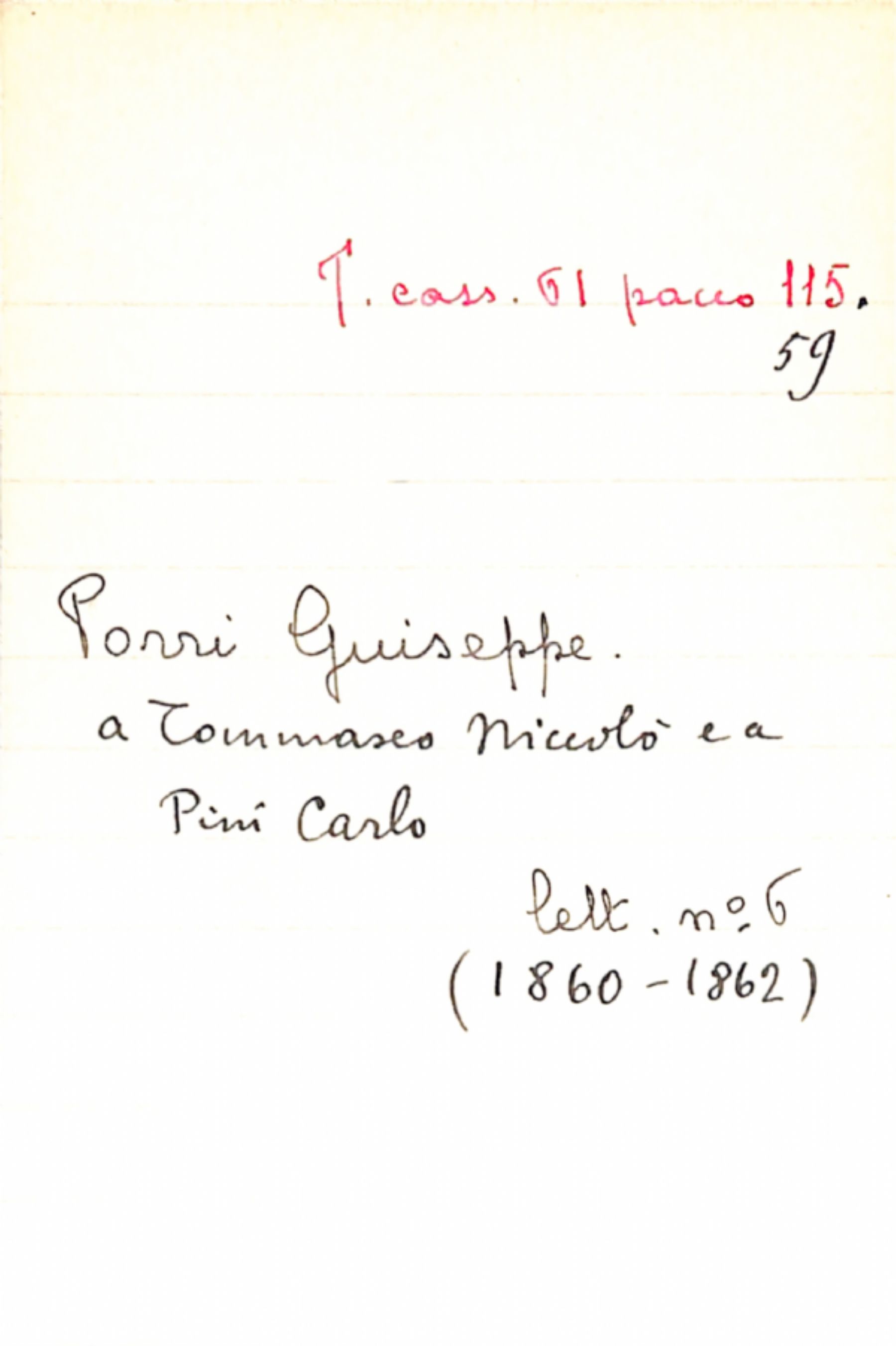 Fascicolo Porri, Giuseppe a Tommaseo, Niccolò; Pini, Carlo