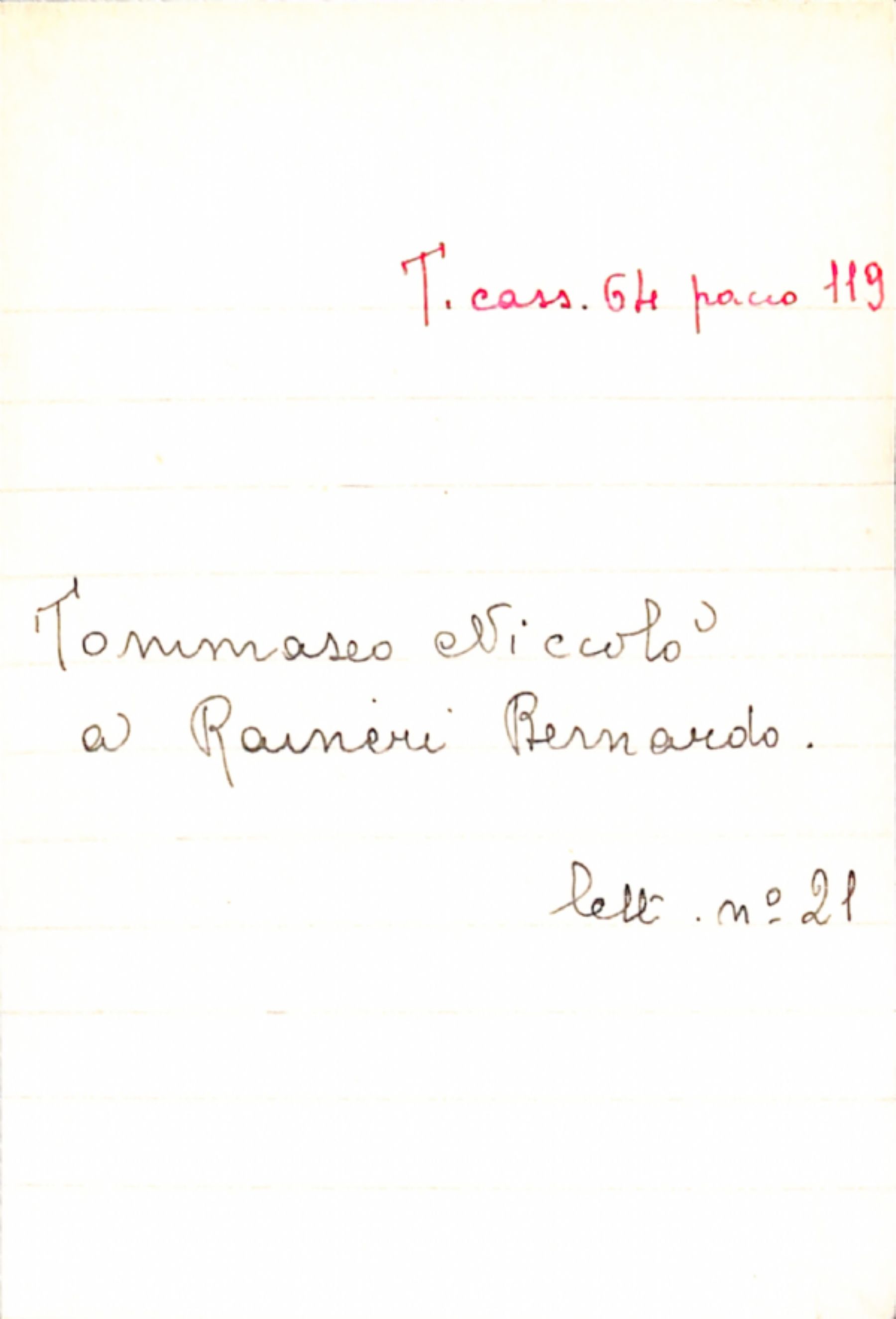 Fascicolo Tommaseo, Niccolò a Ranieri, Bernardo