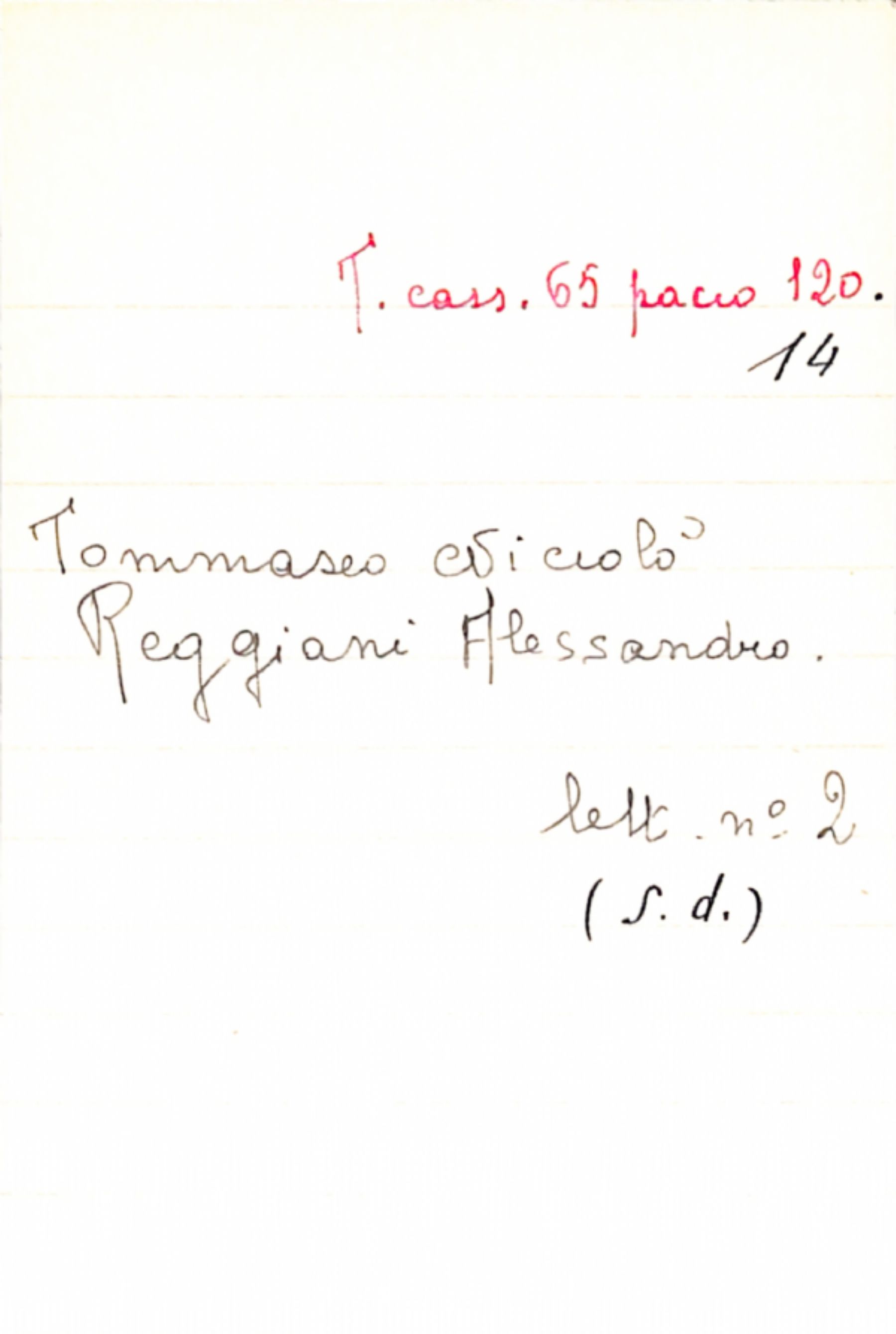 Fascicolo Tommaseo, Niccolò a Reggiani, Alessandro