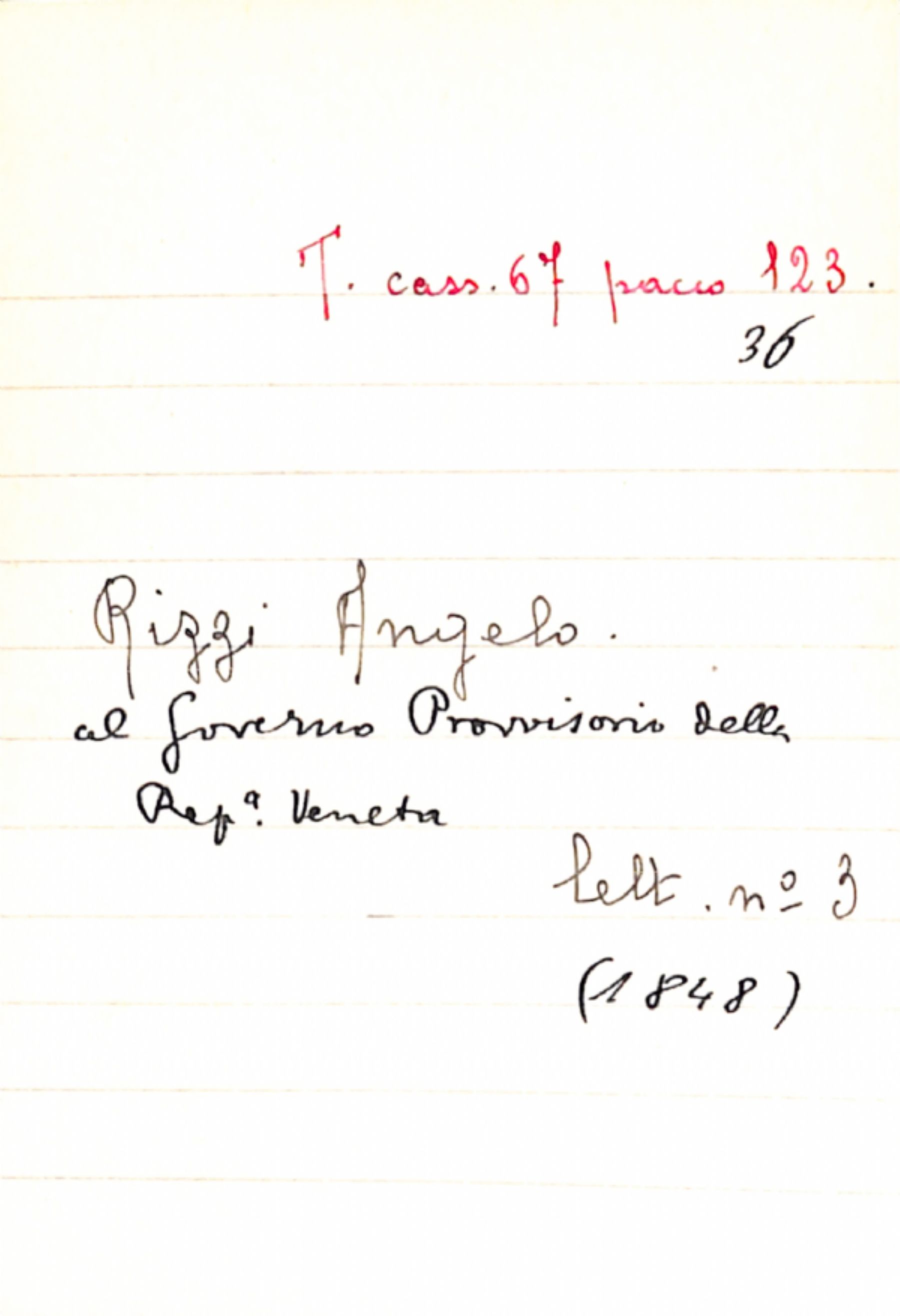 Fascicolo Rizzi, Angelo a Governo Provvisorio della Rep.a Veneta