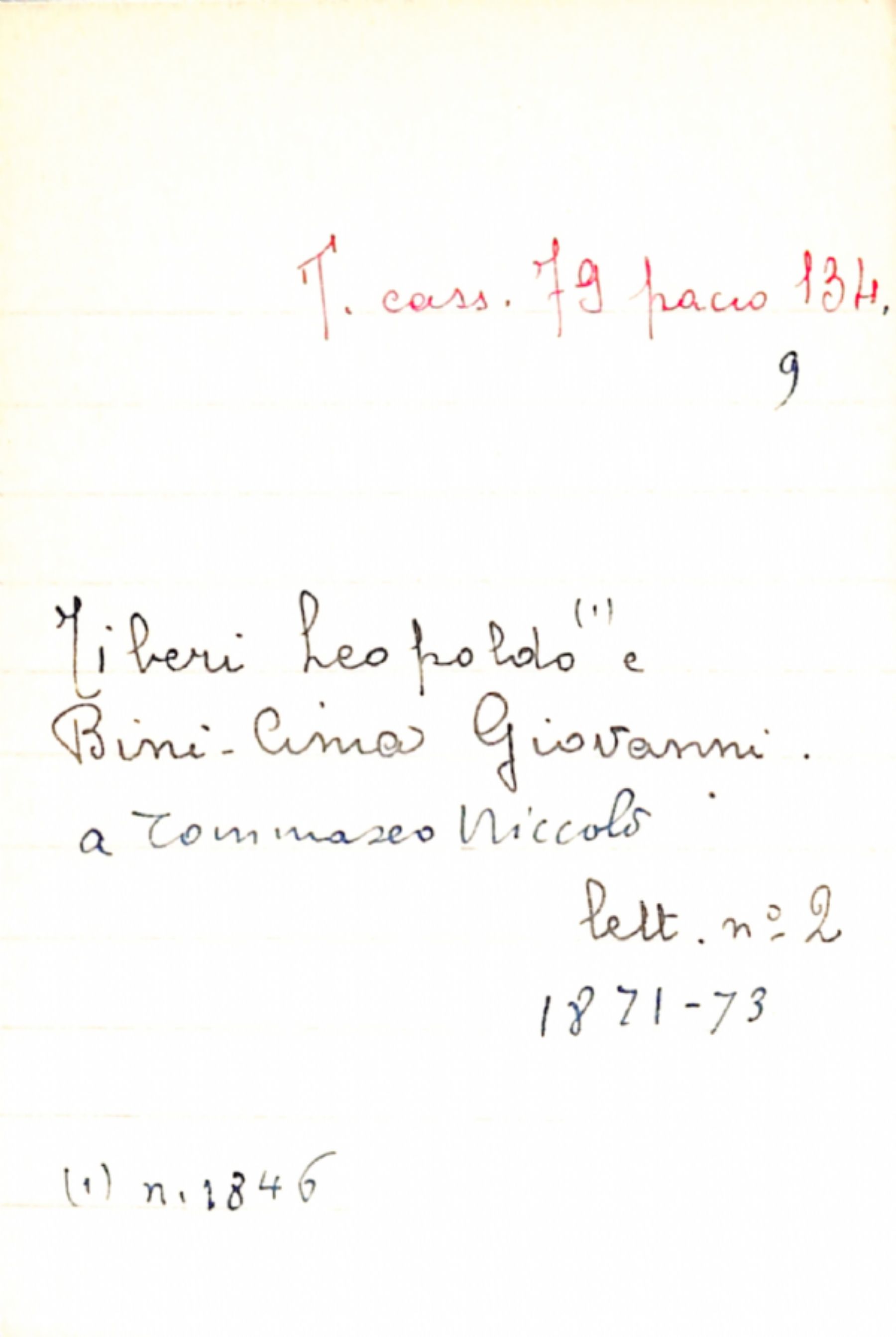 Fascicolo Tiberi, Leopoldo; Bini-Cima, Giovanni a Tommaseo, Niccolò