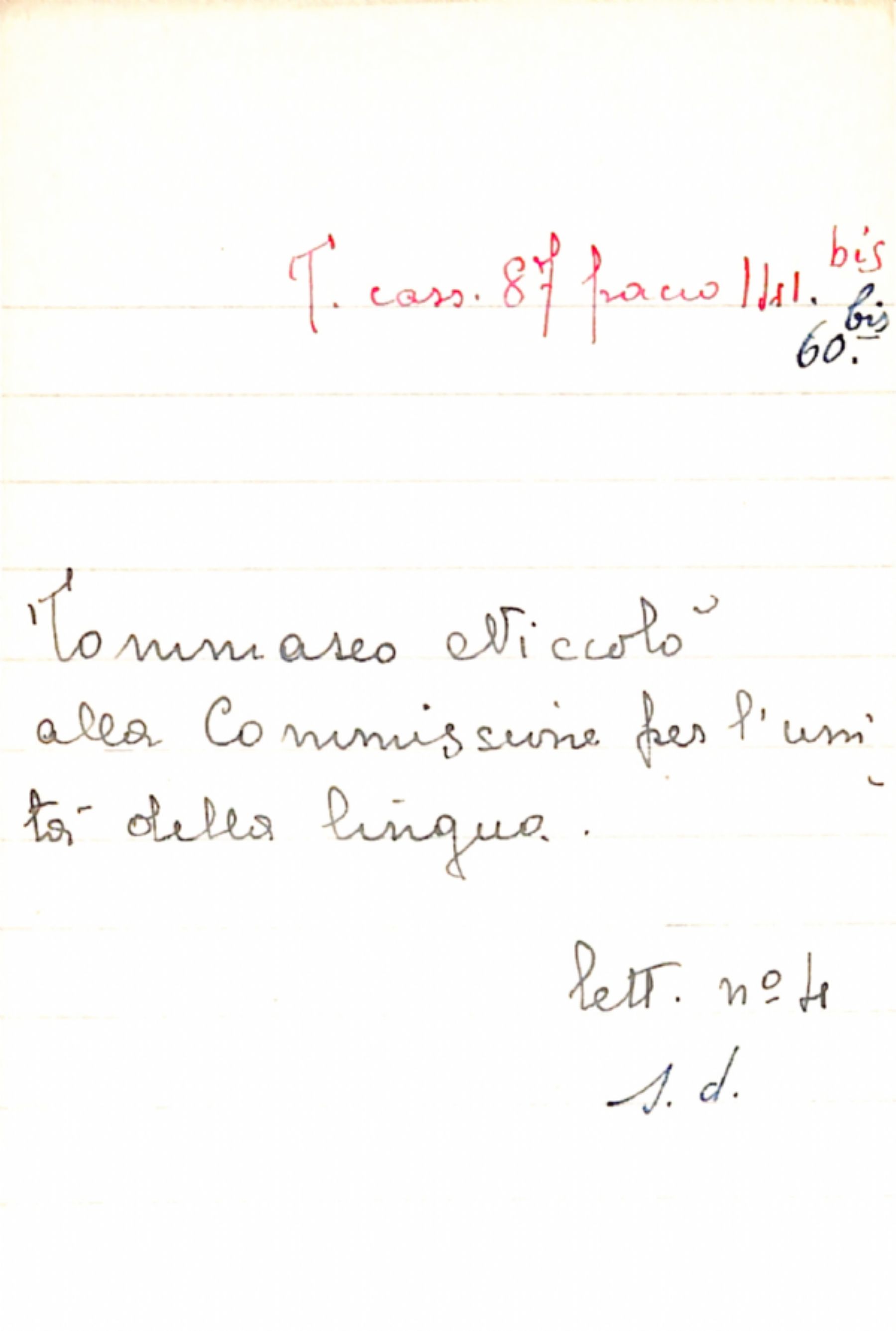 Fascicolo Tommaseo, Niccolò a Commissione per l'unità della lingua