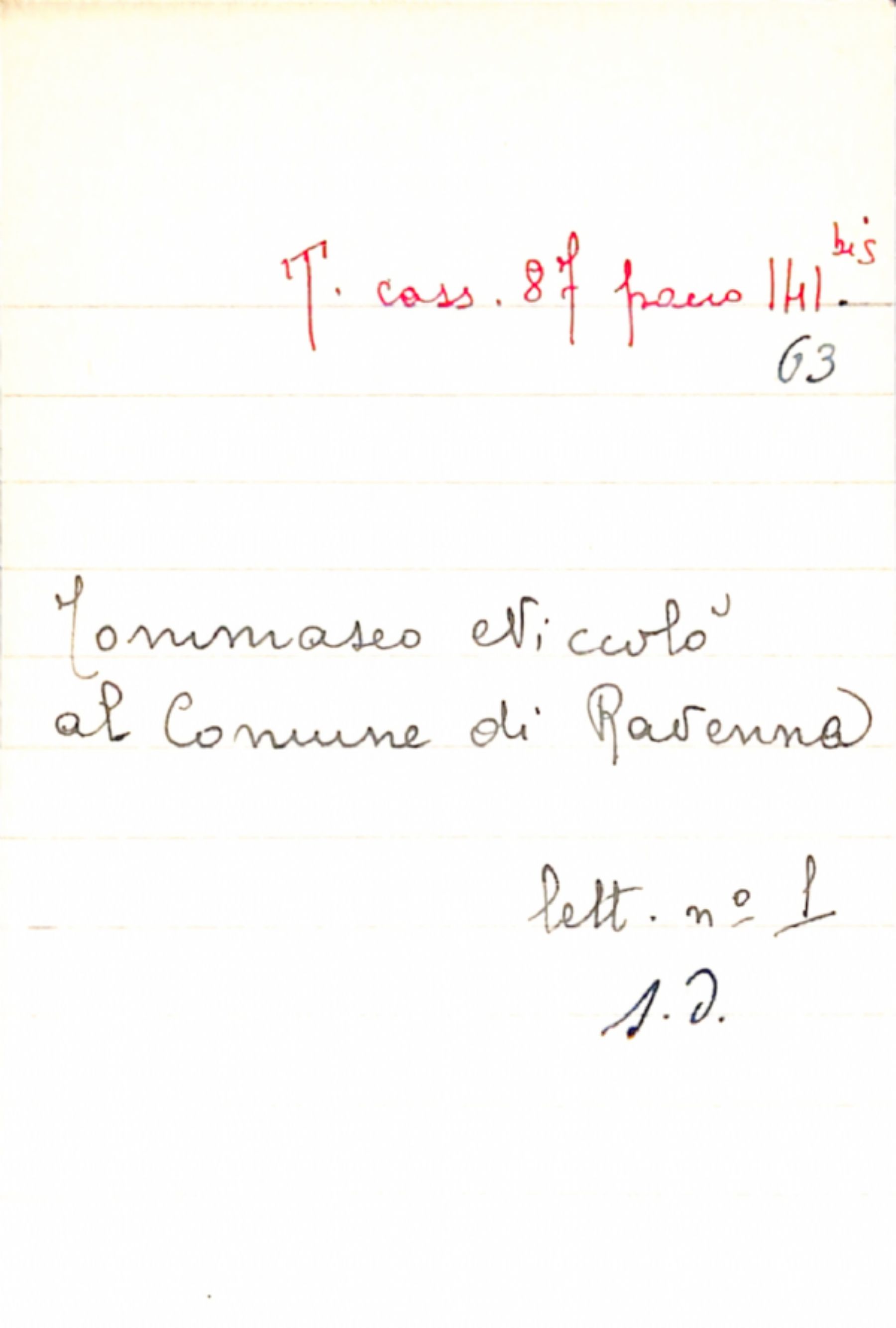 Fascicolo Tommaseo, Niccolò a Comune di Ravenna