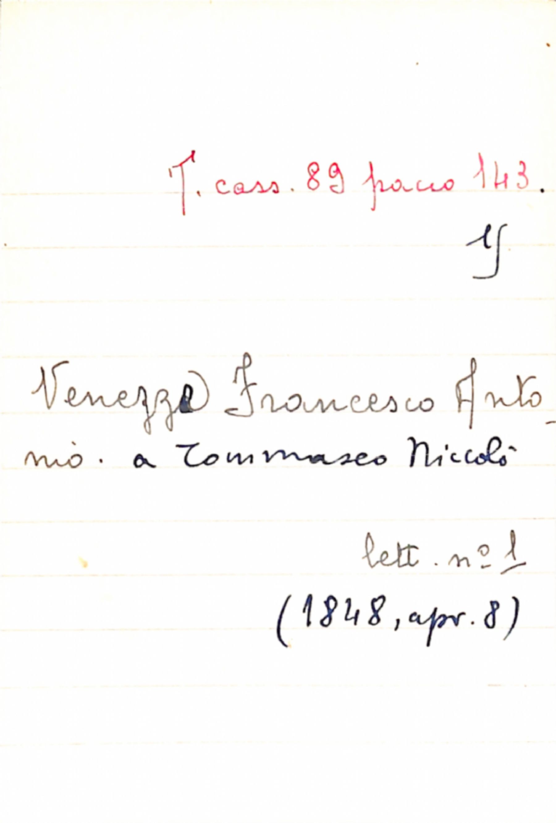 Fascicolo Venezze, Francesco Antonio a Tommaseo, Niccolò