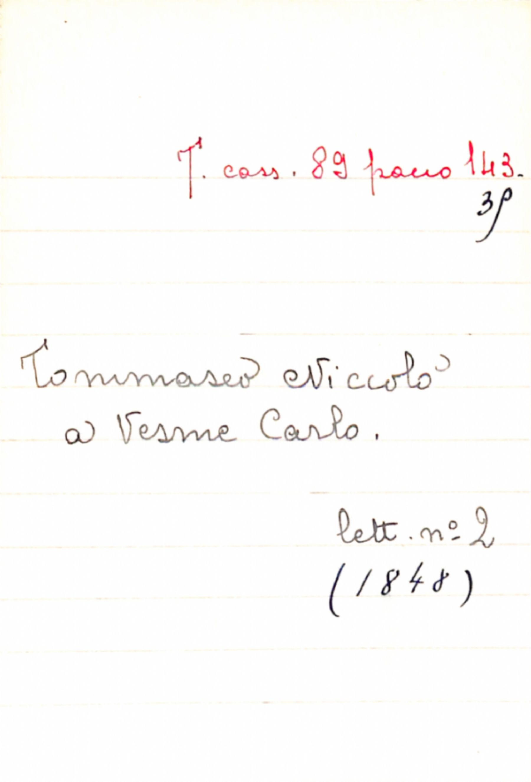 Fascicolo Tommaseo, Niccolò a Vesme, Carlo