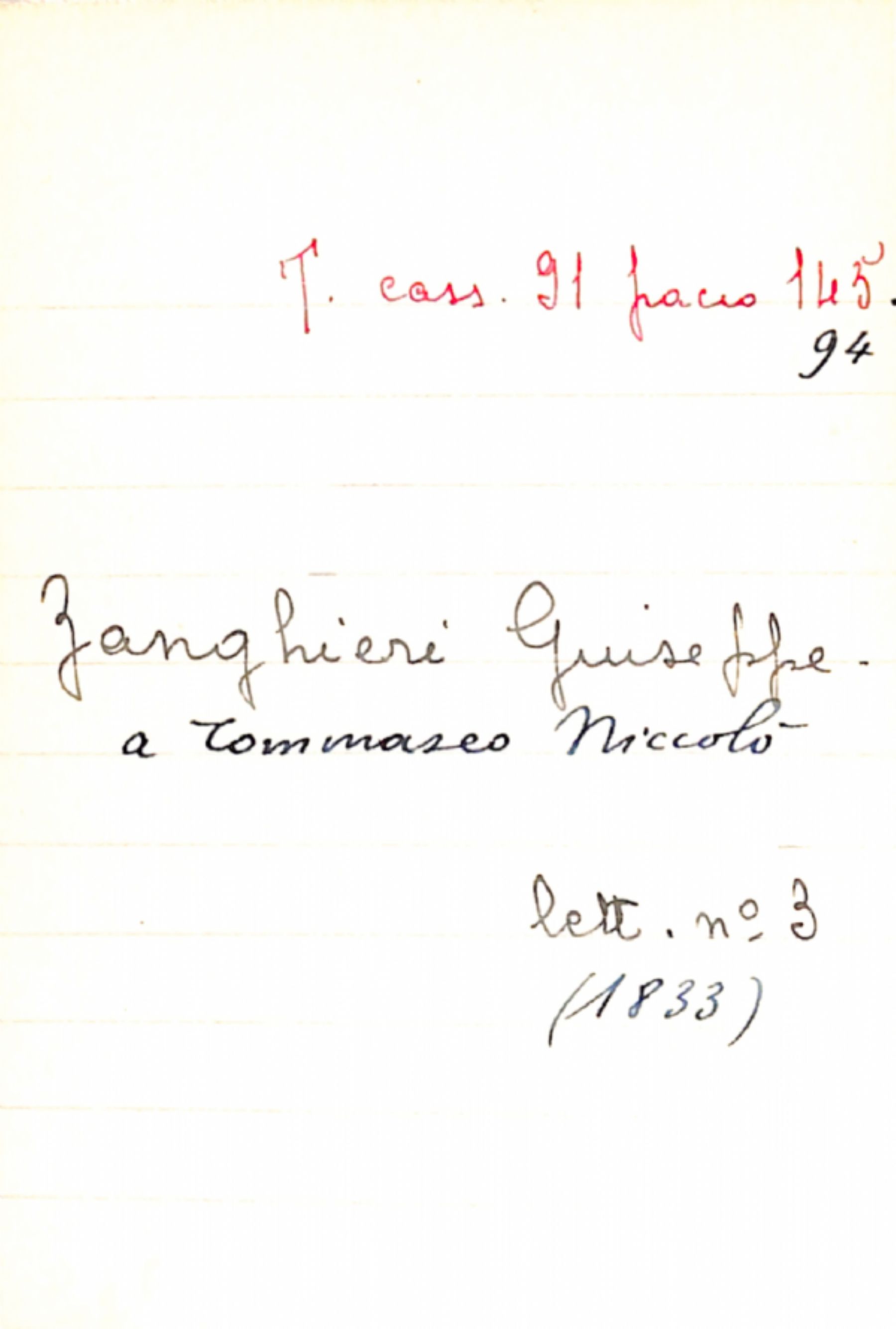 • Zanghieri, Giuseppe a Tommaseo, Niccolò