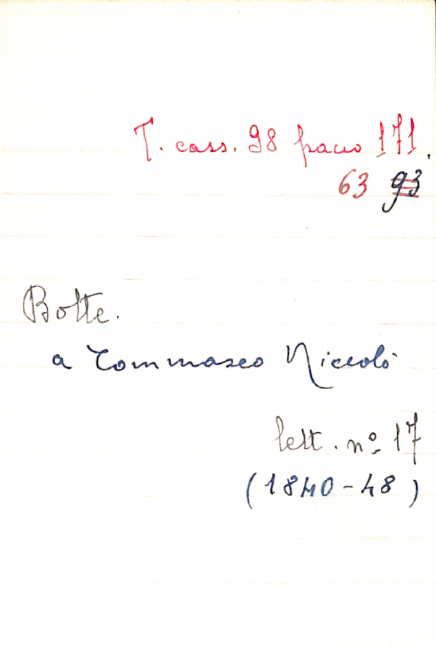 Fascicolo Botte a Tommaseo, Niccolò