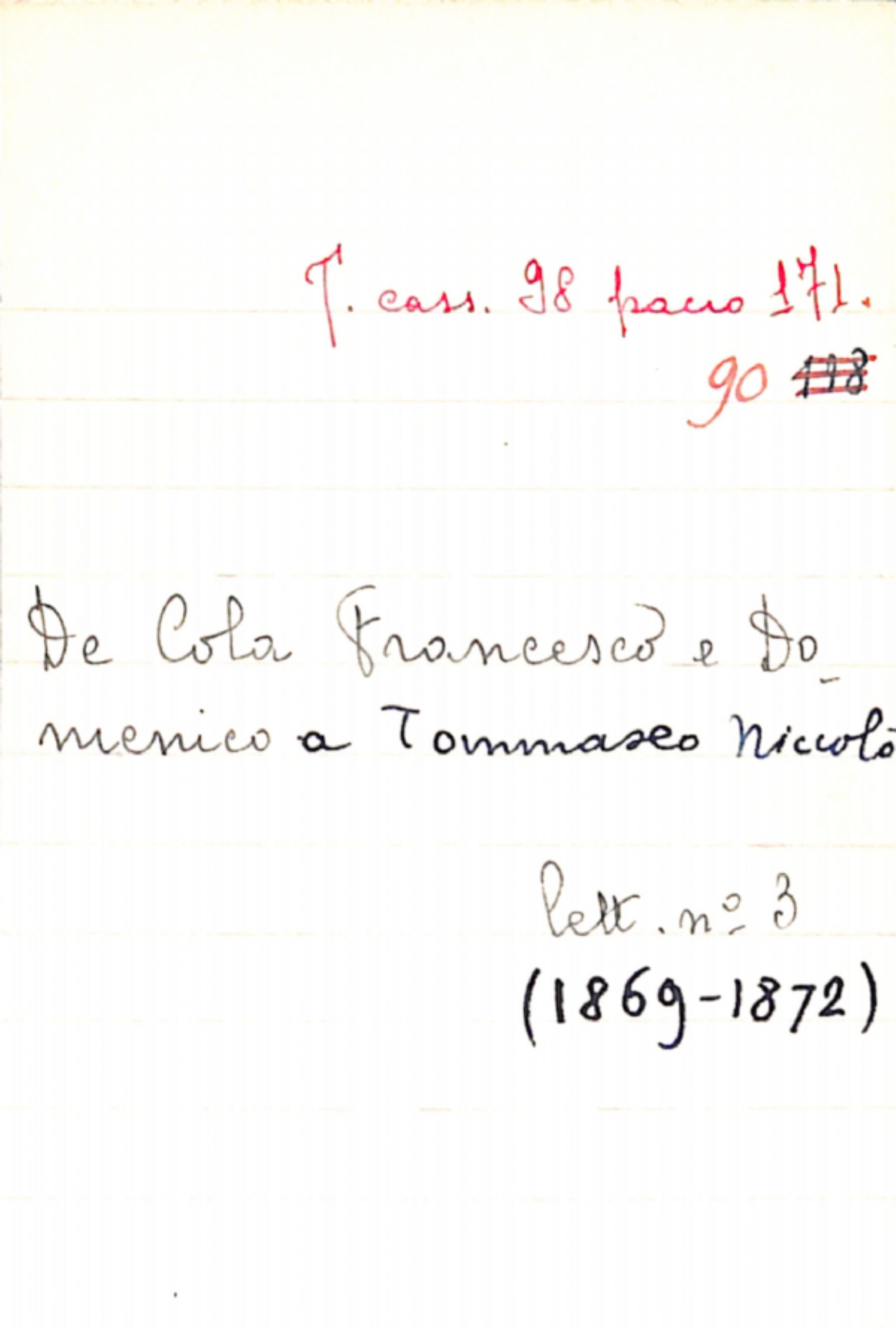 Fascicolo De Cola, Francesco; De Cola, Domenico a Tommaseo, Niccolò