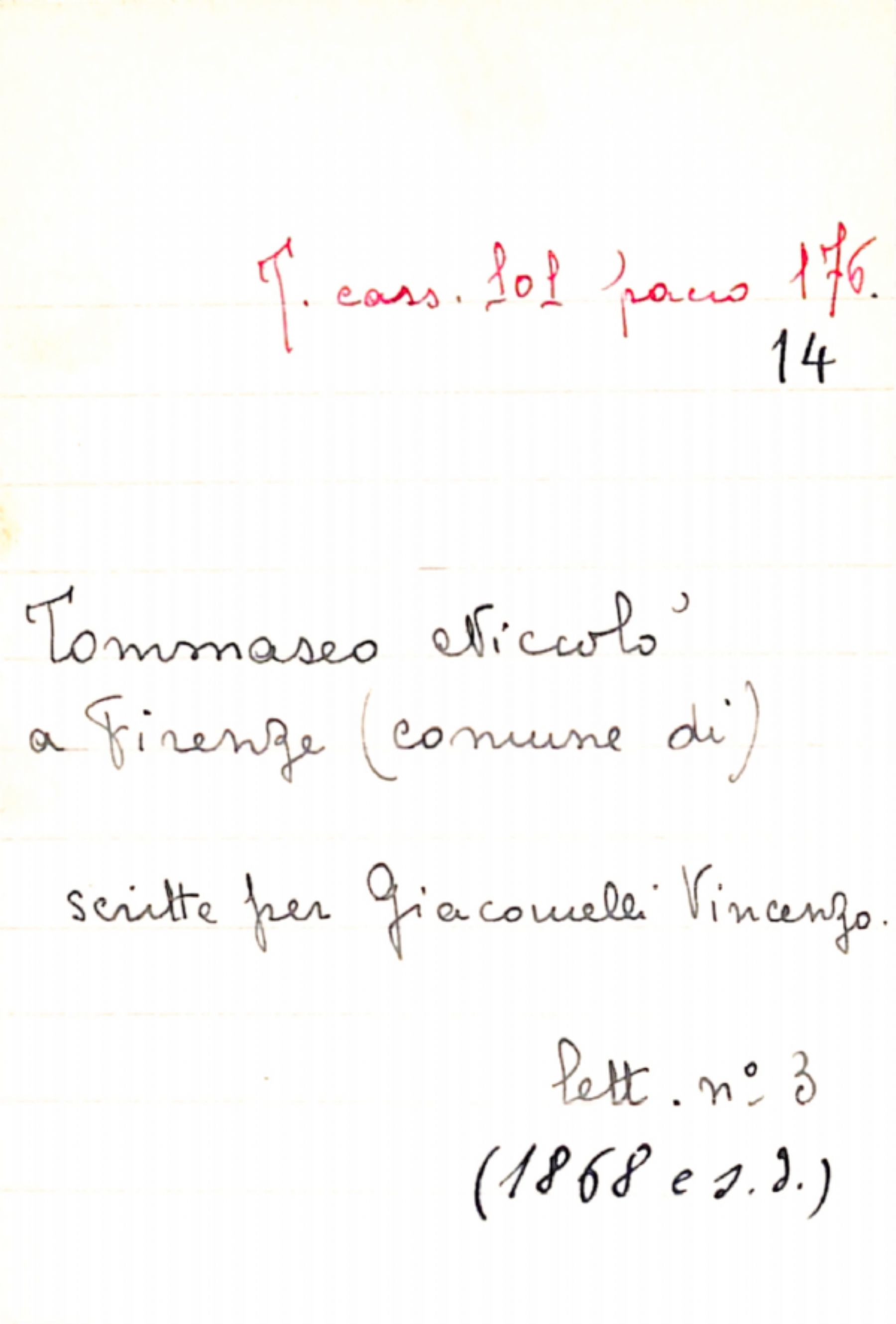 Fascicolo Tommaseo, Niccolò a Comune di Firenze