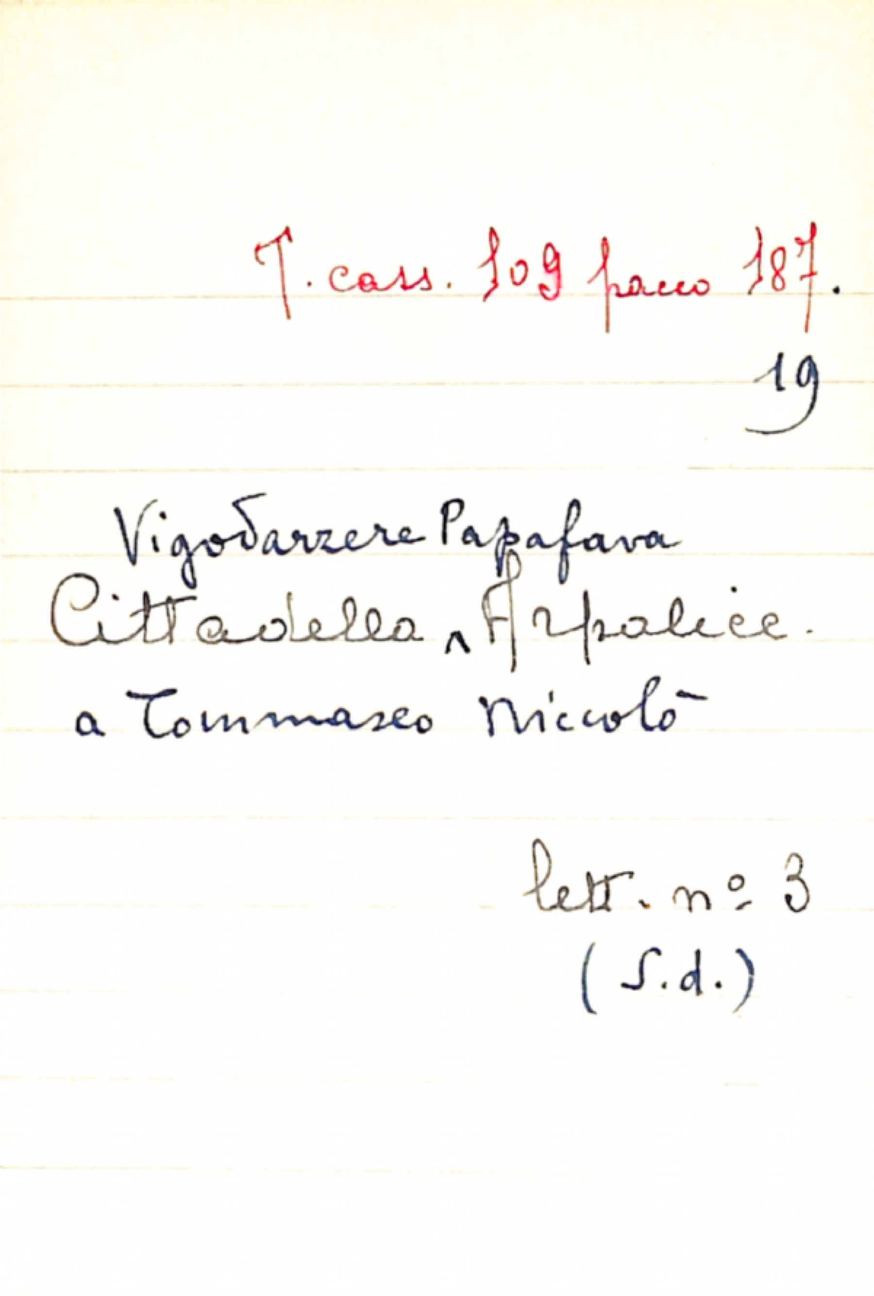 Fascicolo Cittadella Vigodarzere Papafava, Arpalice a Tommaseo, Niccolò