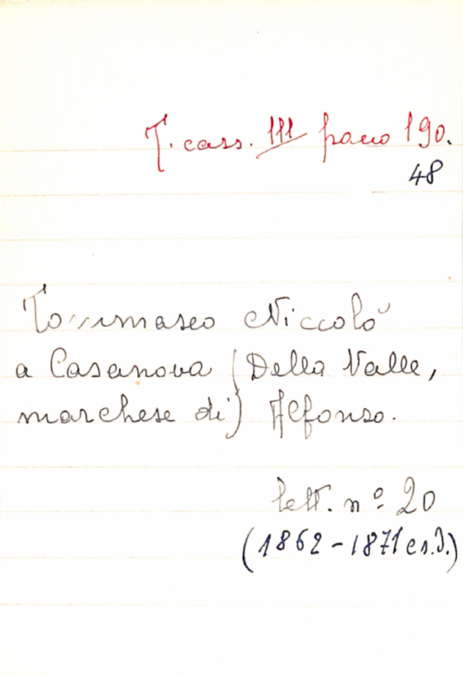 Fascicolo Tommaseo, Niccolò a Casanova (Della Valle, marchese di), Alfonso