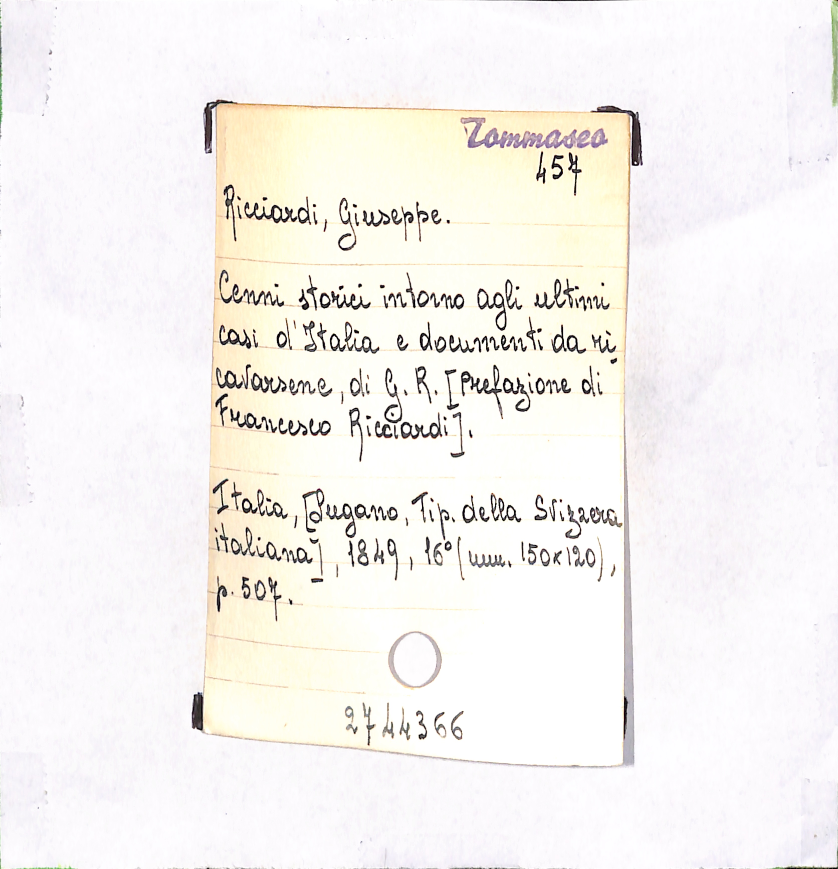 U.D. monografia Cenni storici intorno agli ultimi casi d'Italia e documenti da ricavarsene, di G. R.