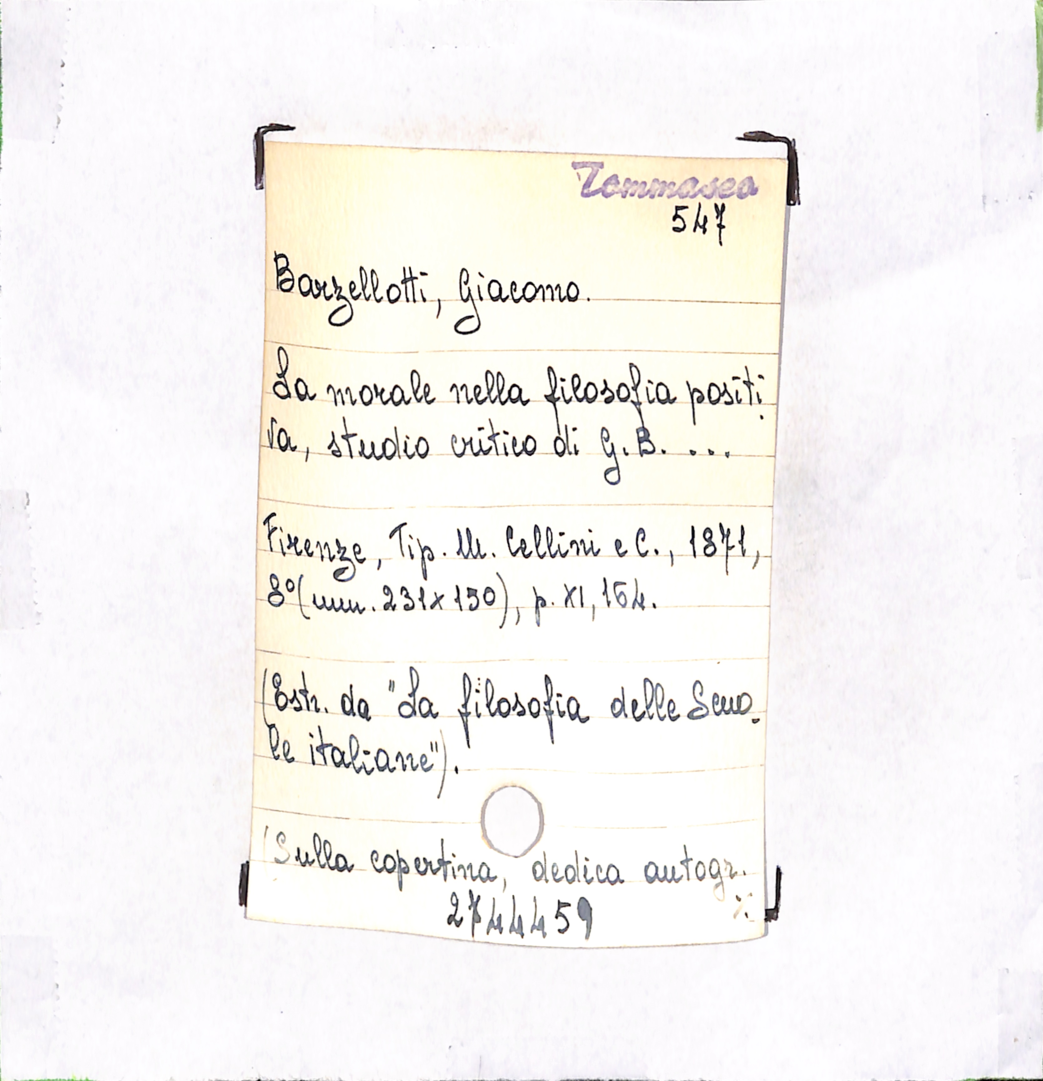 U.D. monografia La morale nella filosofia positiva, studio critico di G. B. …