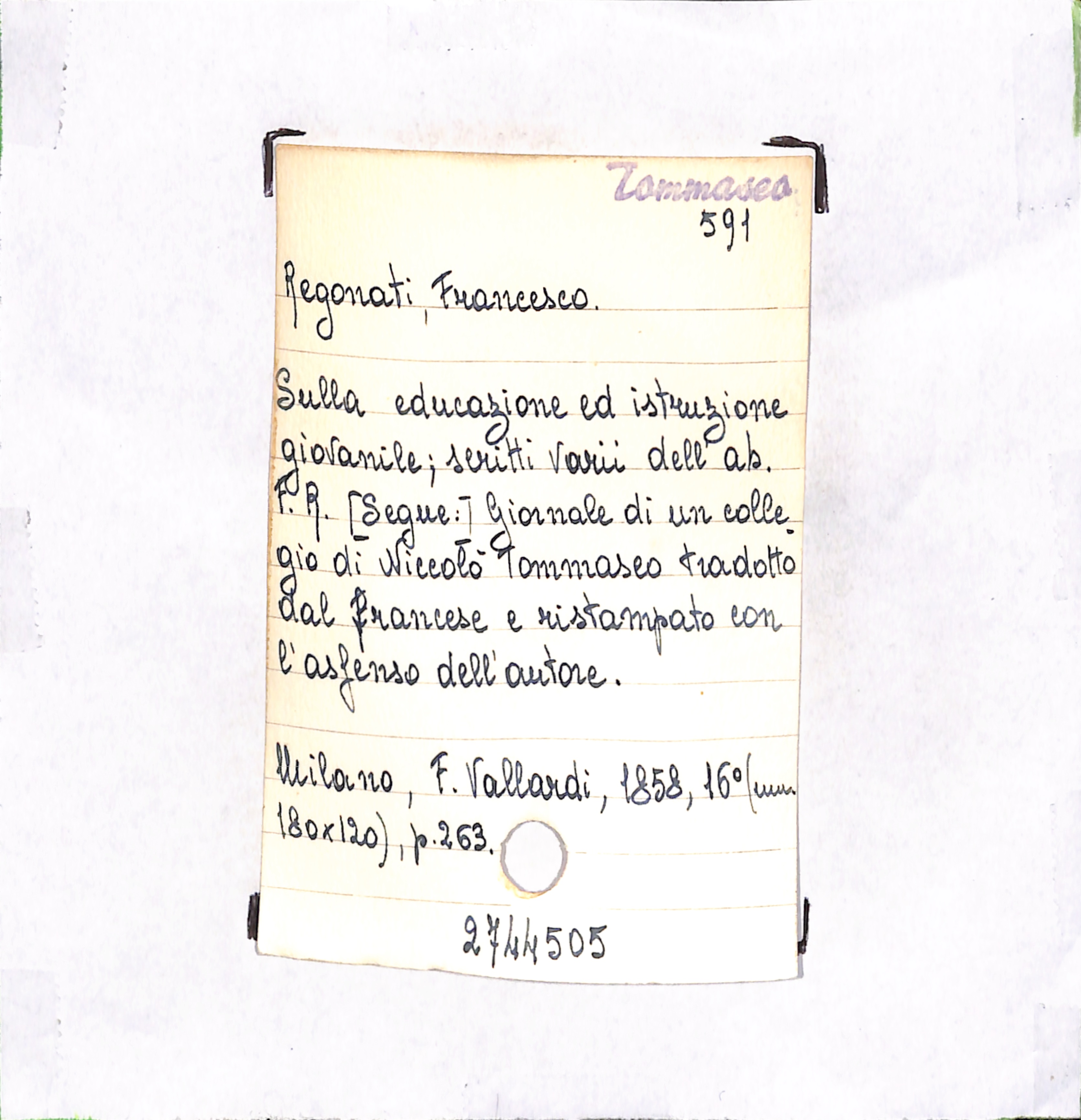 • Sulla educazione ed istruzione giovanile; scritti varii dell'ab. F. R.