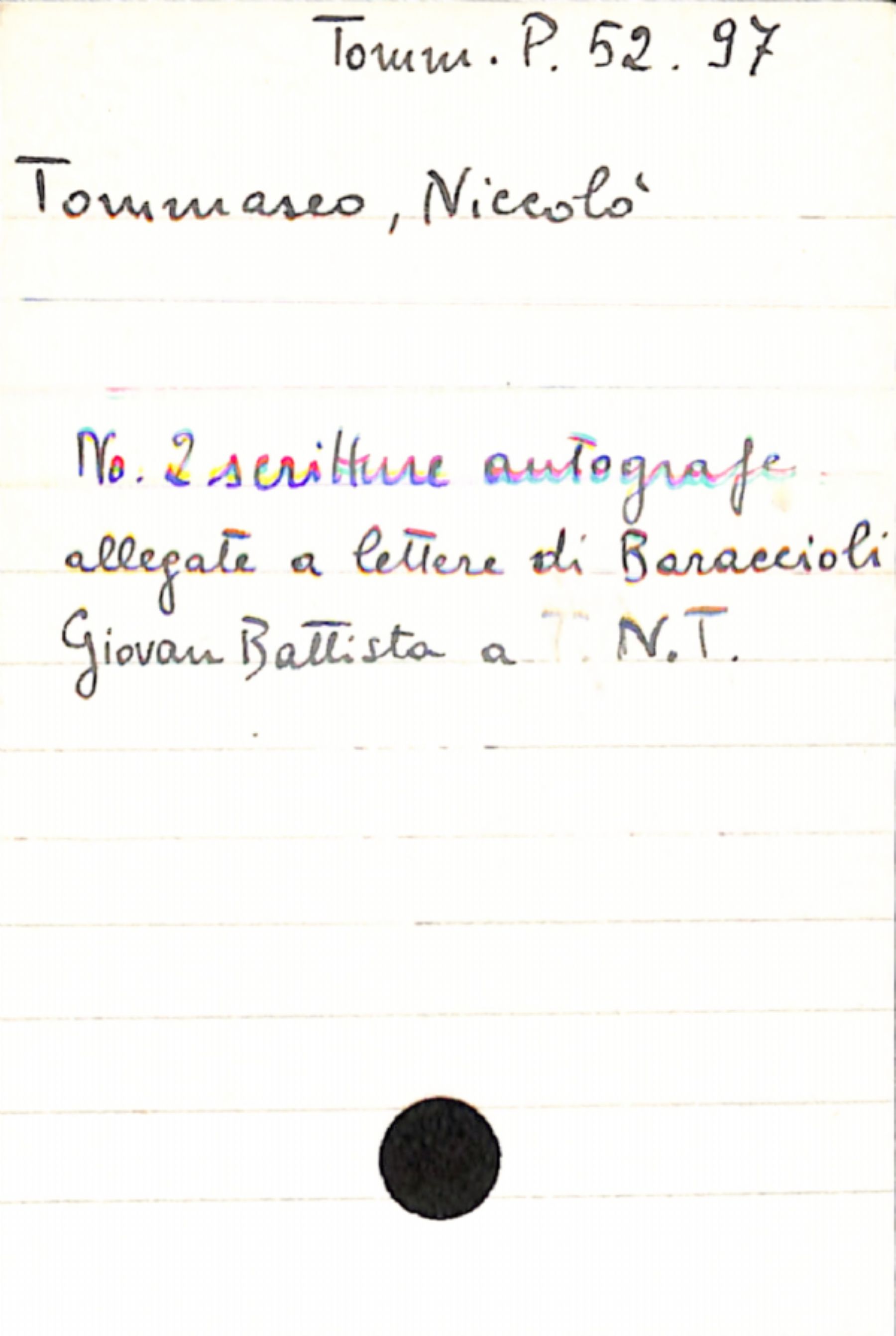 Fascicolo Baraccioli, Giovan Battista a Tommaseo, Niccolò