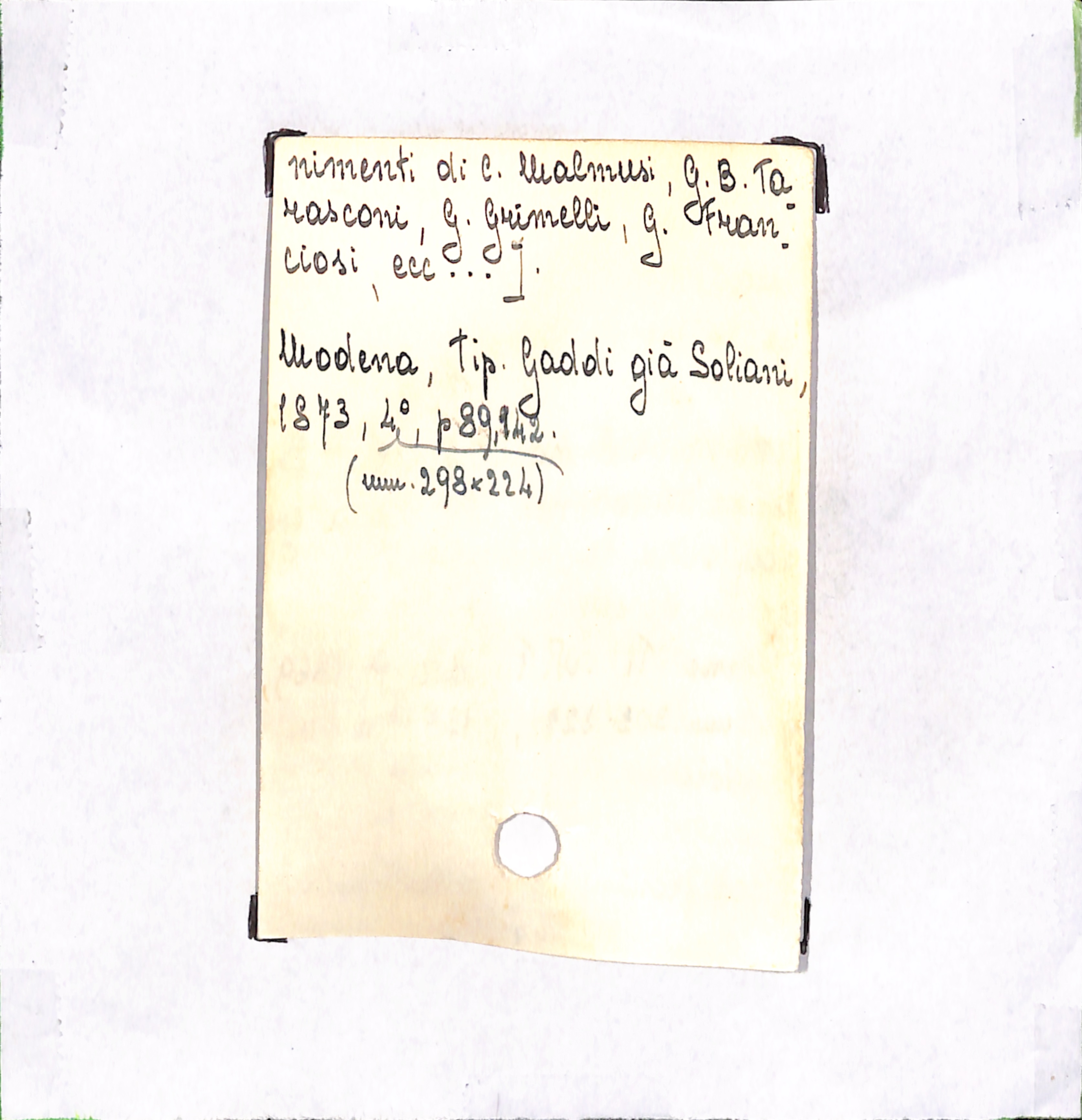 U.D. monografia Componimenti per la pubblica solenne adunanza tenutasi dai socj della Regia Accademia modenese di scienze, lettere ed arti nel dì 21 ottobre 1872 a celebrare la ricorrenza del secondo centenario della nascita di S. A. Muratori