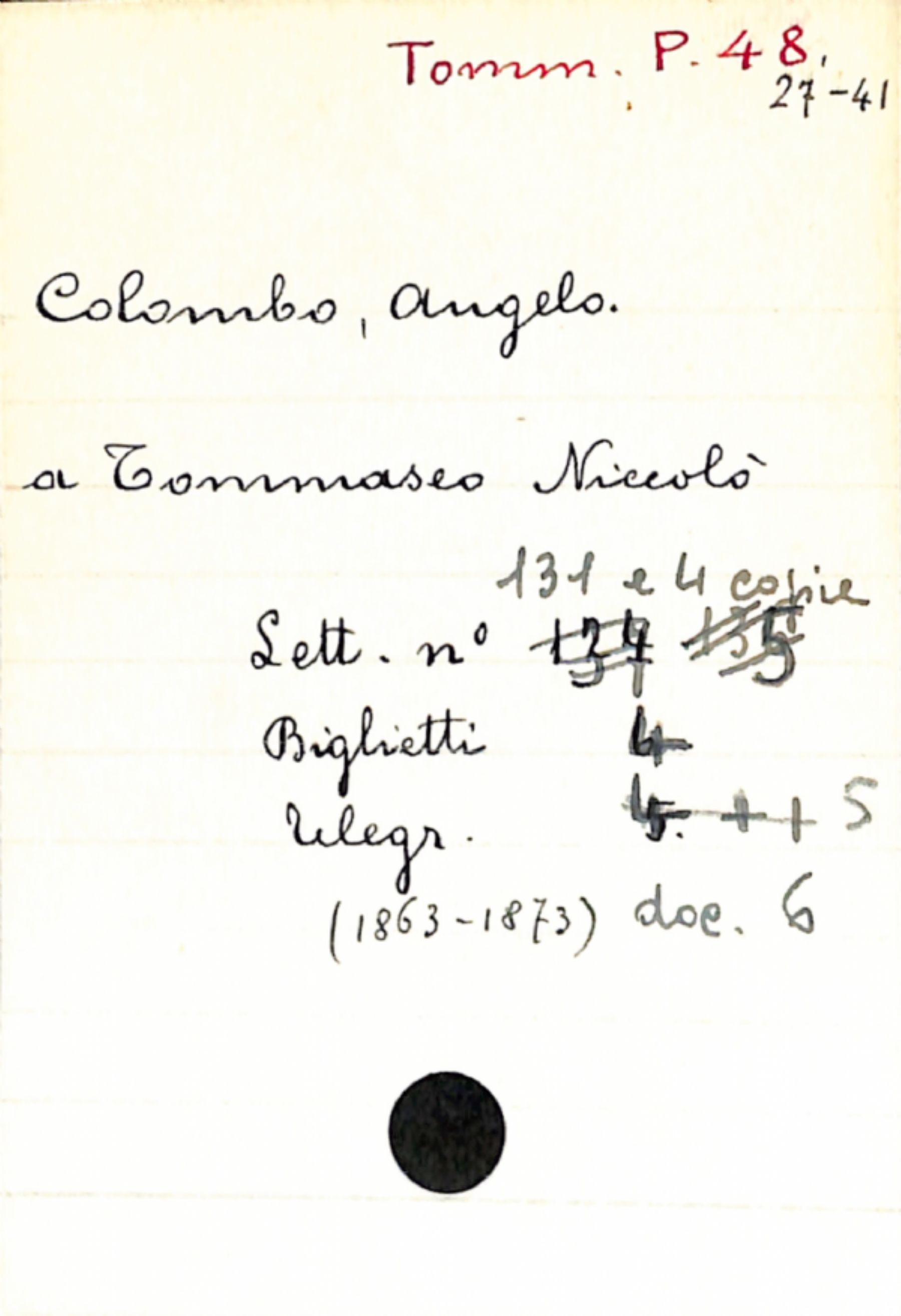 Fascicolo Colombo, Angelo a Tommaseo, Niccolò