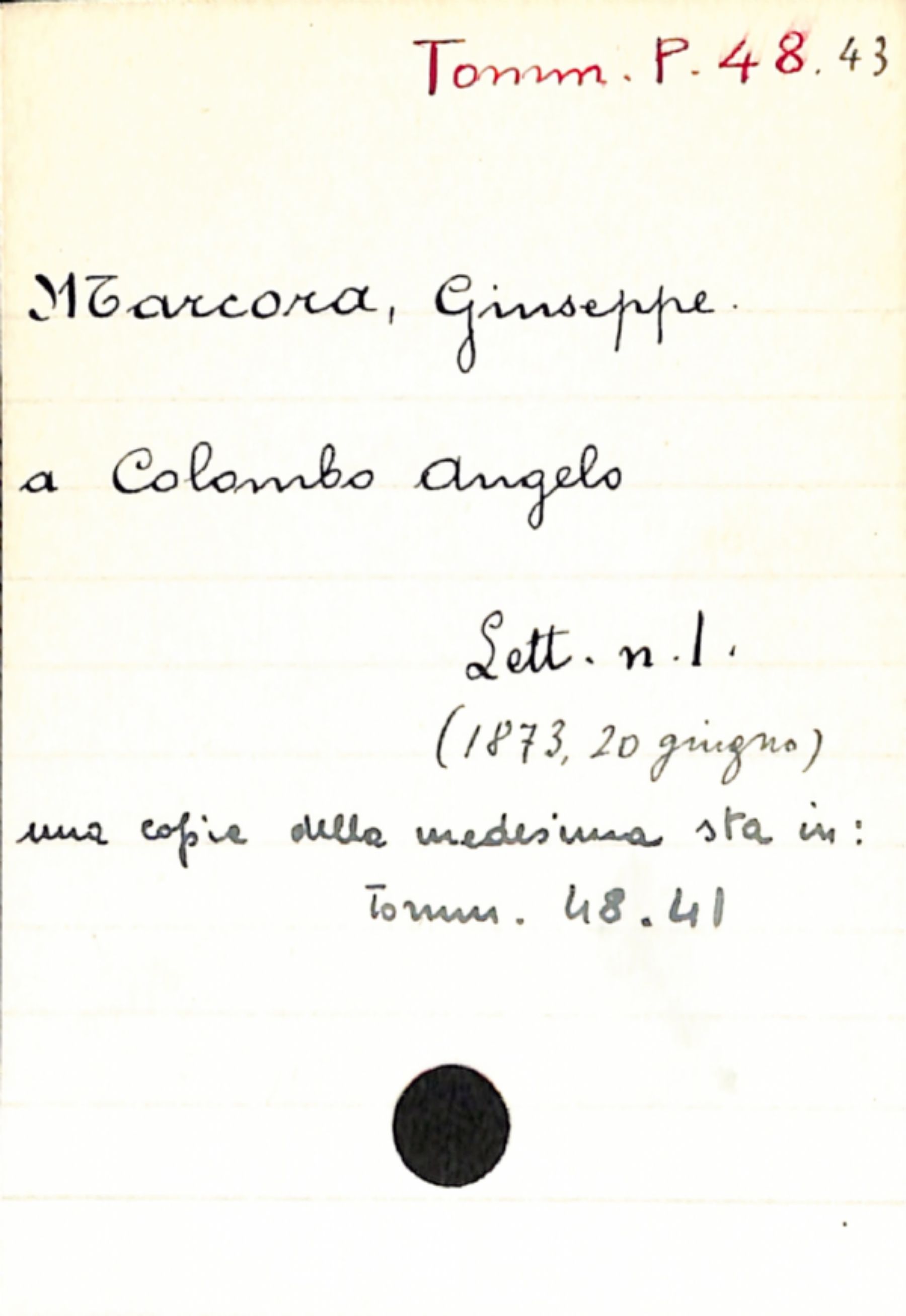 Fascicolo Marcora, Giuseppe a Colombo, Angelo