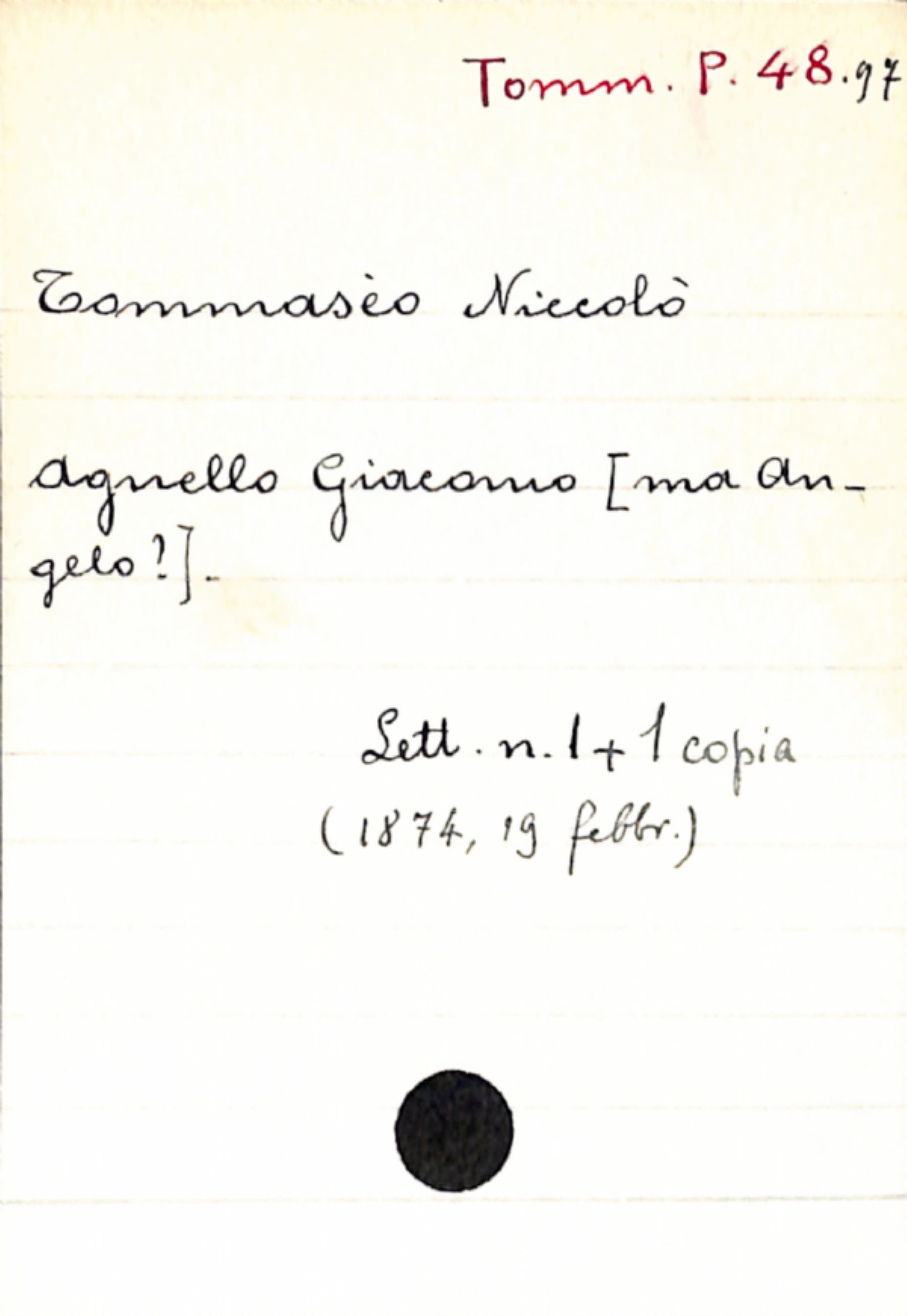• Tommaseo, Niccolò a Agnello, Giacomo [ma Angelo?]