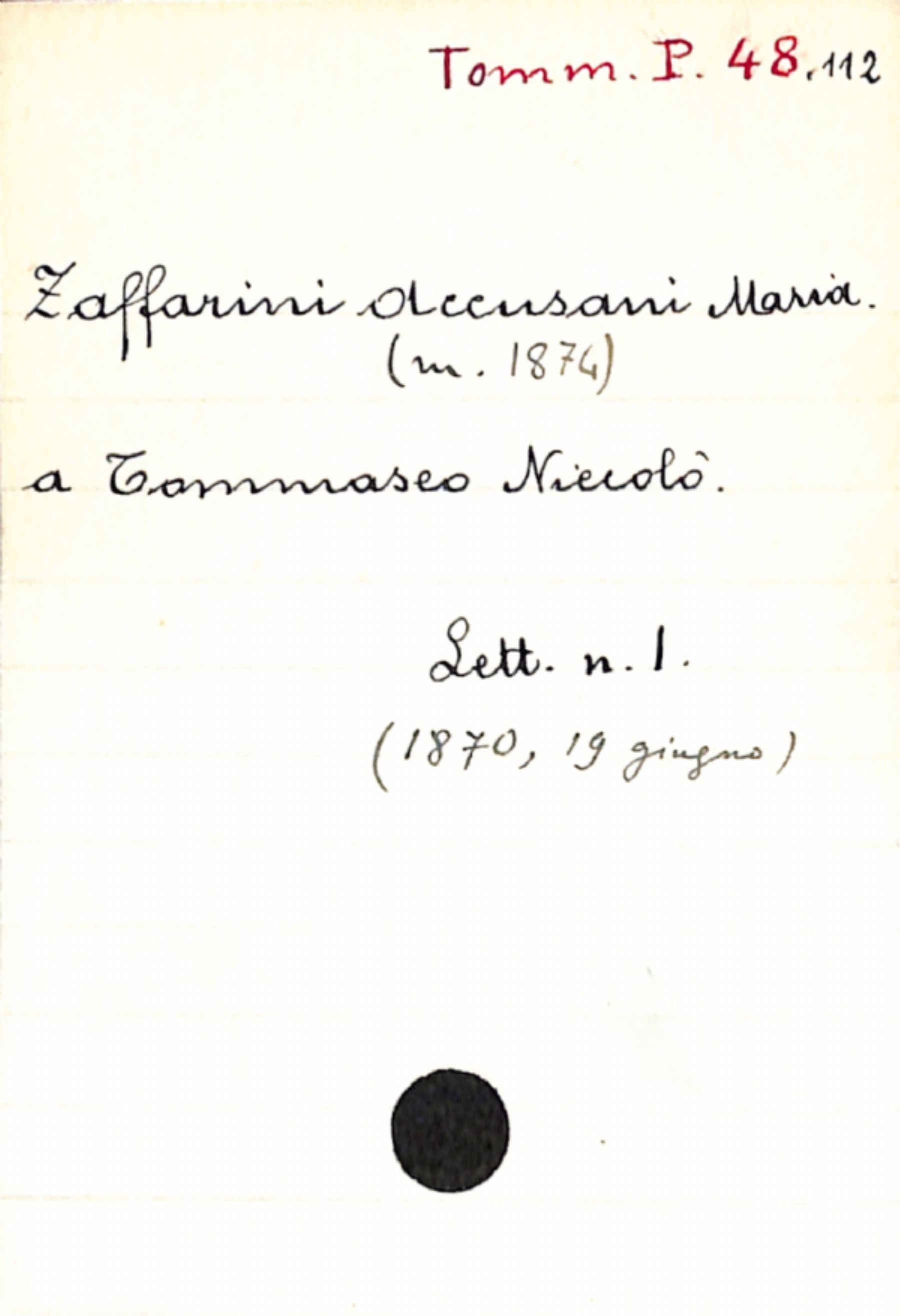 Fascicolo Zaffarini Accusani, Maria a Tommaseo, Niccolò