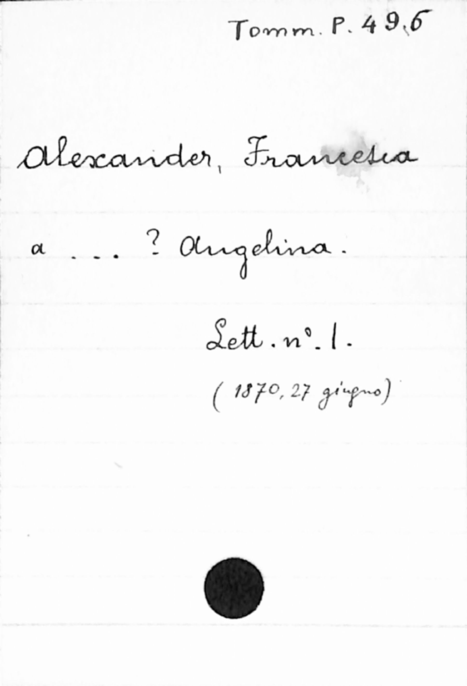 Fascicolo Alexander, Francesca a ?, Angelina