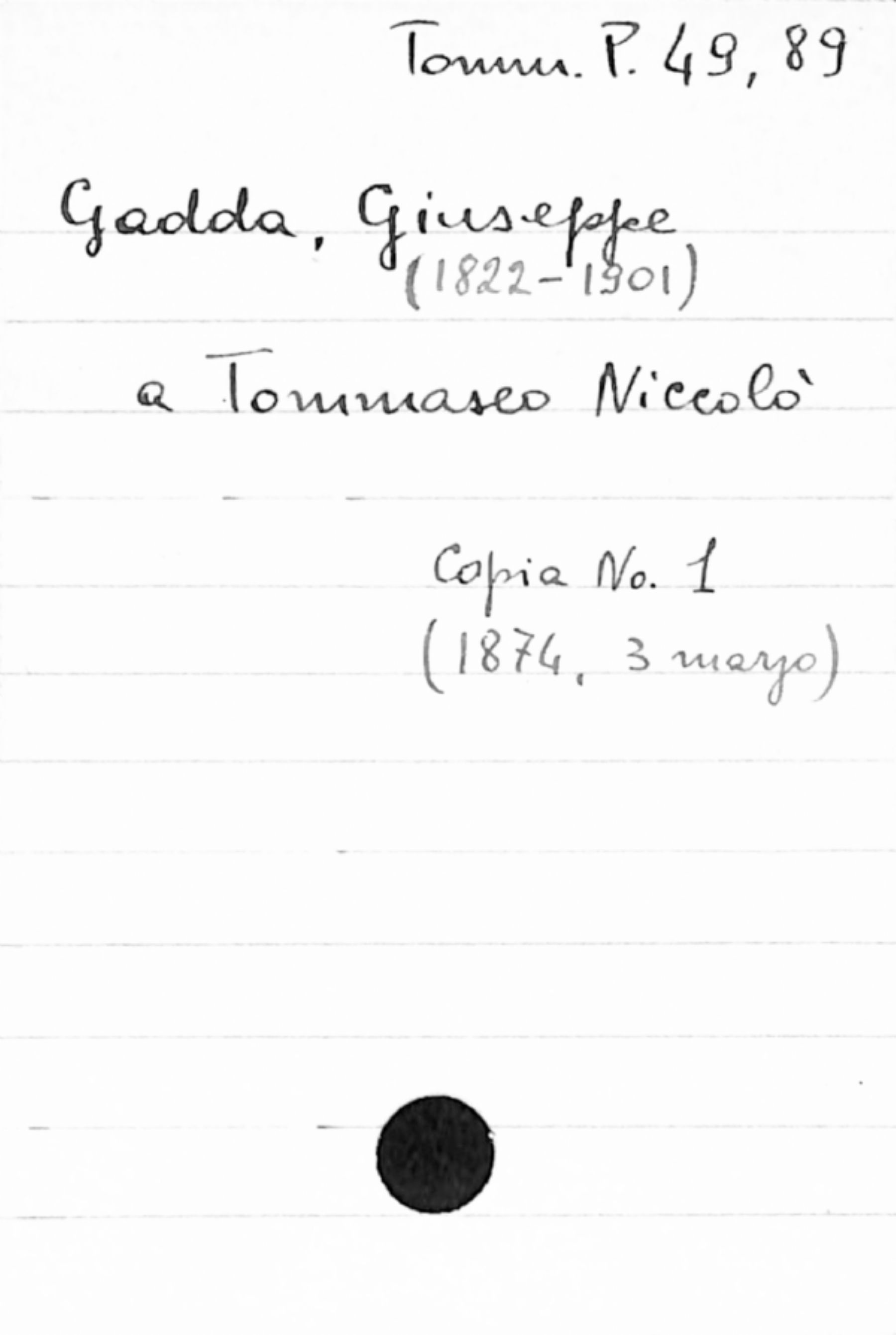 Fascicolo Gadda, Giuseppe a Tommaseo, Niccolò