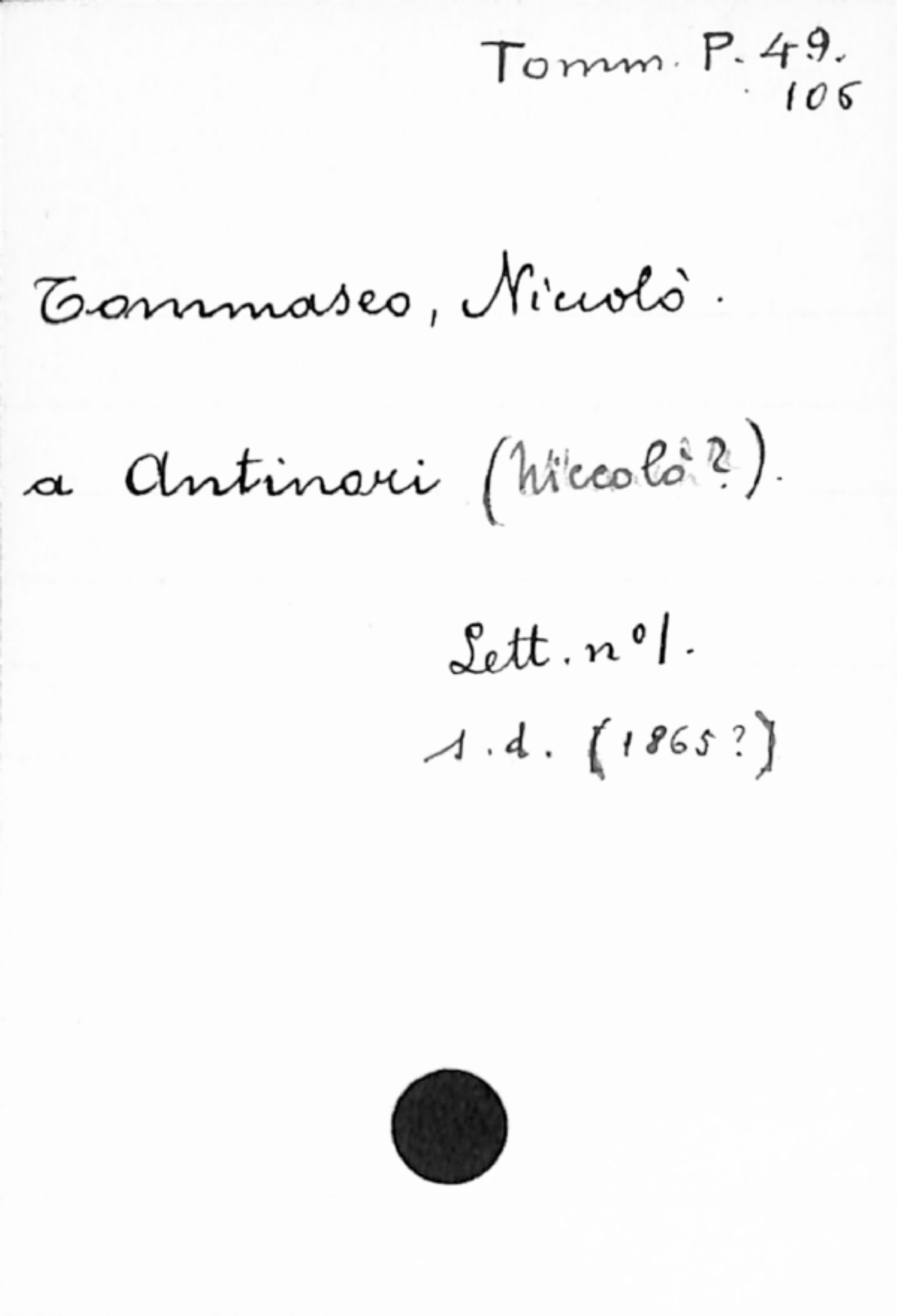 • Tommaseo, Niccolò a Antinori, (Niccolò?)
