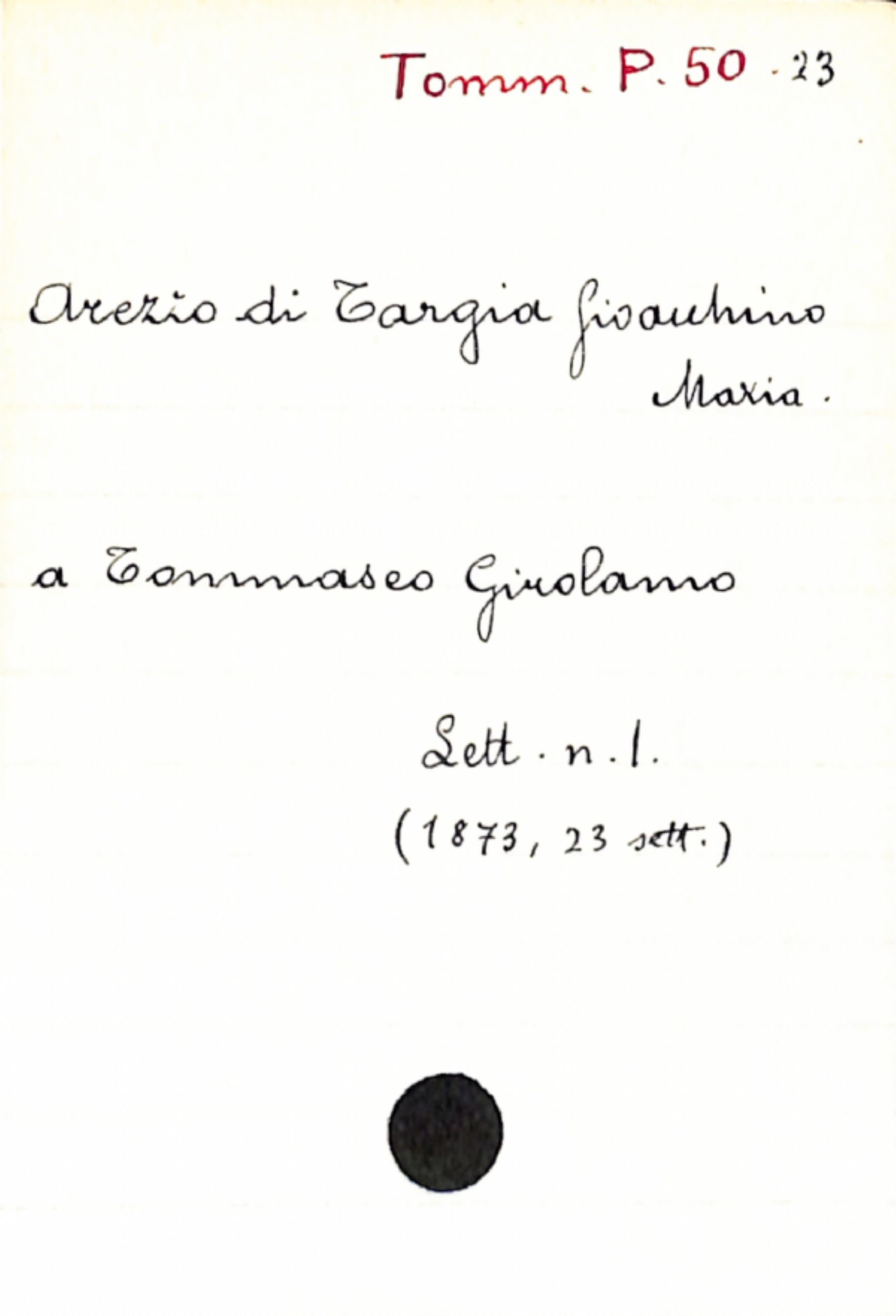 Fascicolo Arezzo di Targia, Gioacchino Maria a Tommaseo, Niccolò