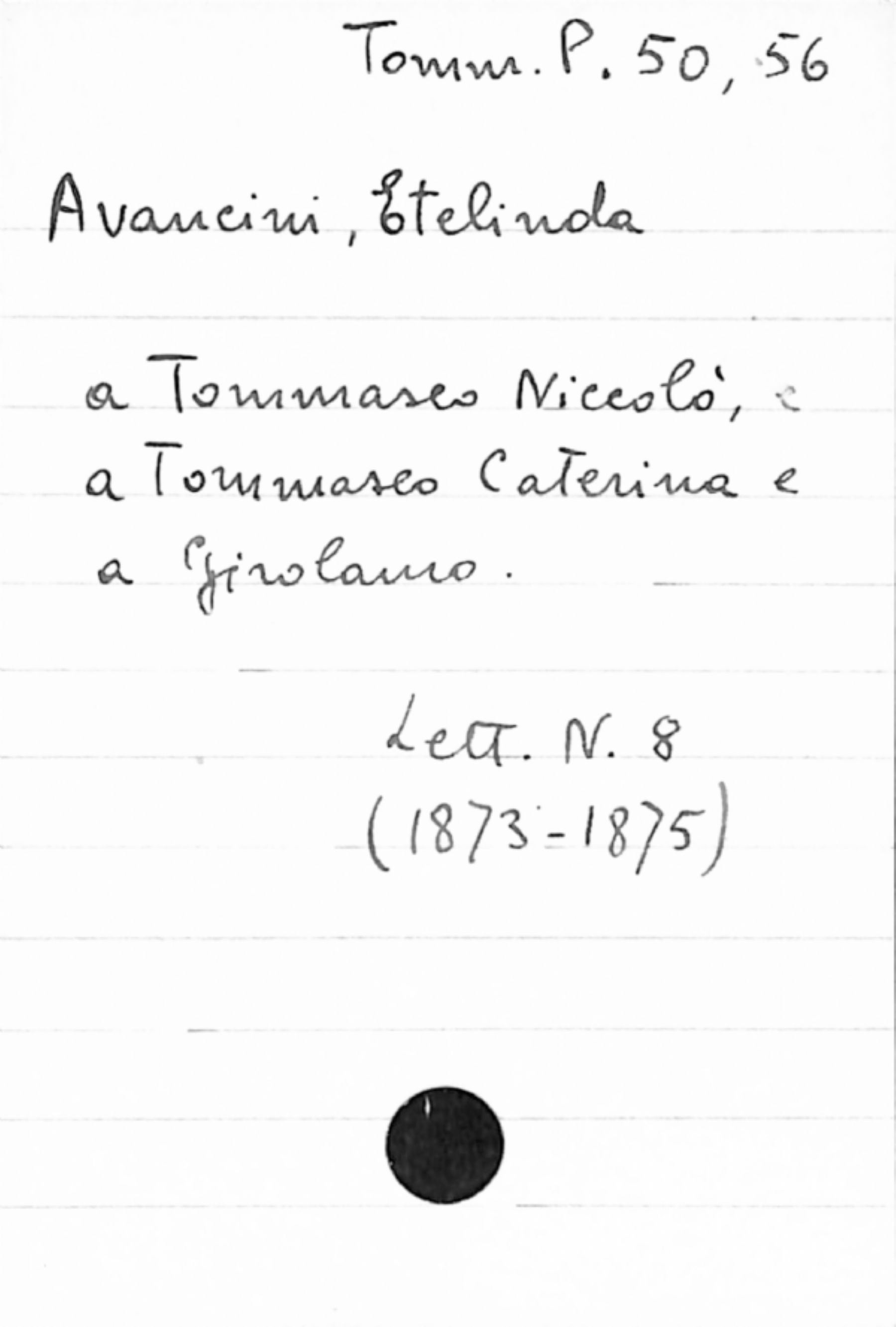 Fascicolo Avancini, Etelinda a Tommaseo, Niccolò, Tommaseo Caterina; Tommaseo Girolamo