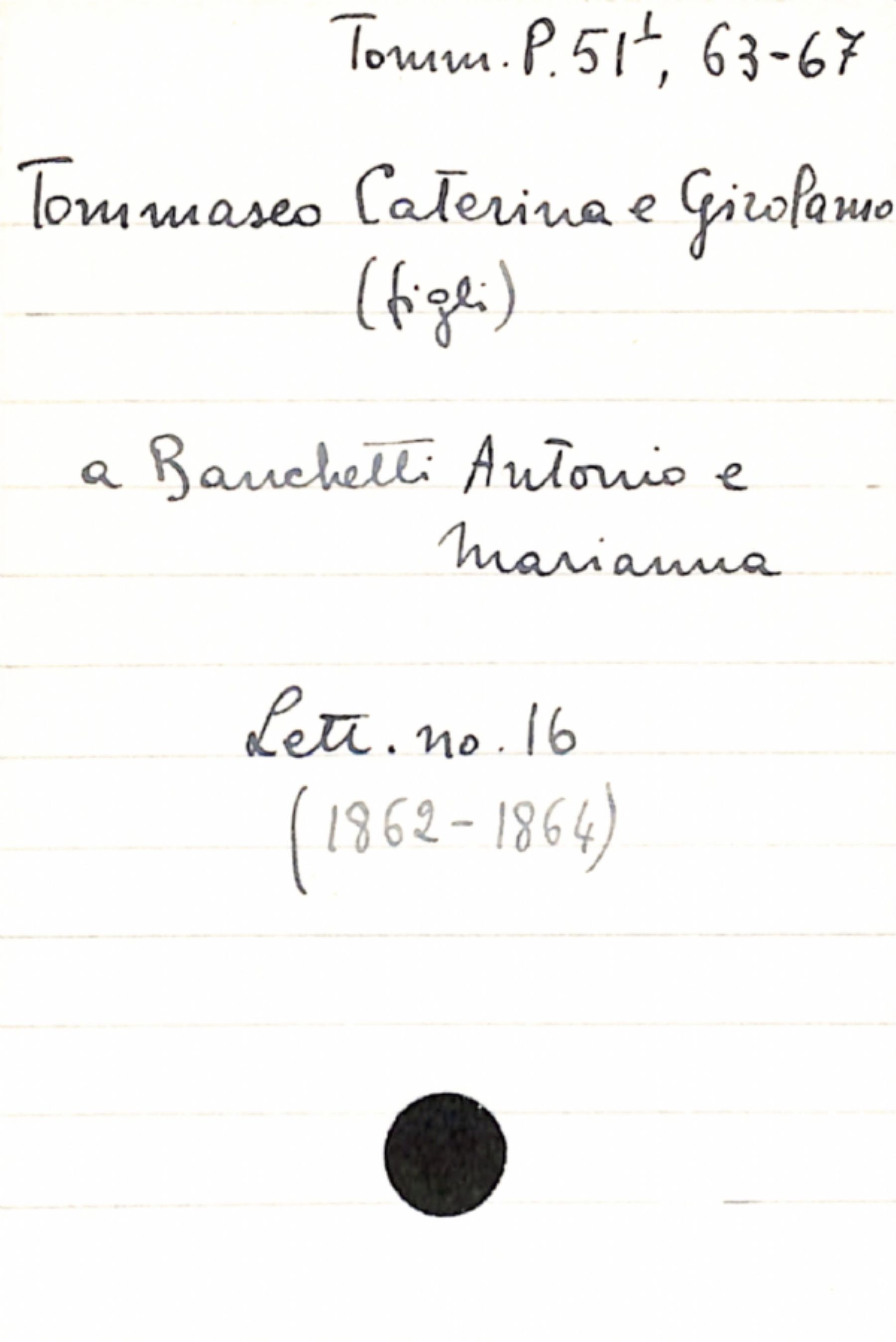 • Tommaseo , Caterina; Tommaseo, Girolamo (figli) a Banchetti, Antonio; Banchetti, Marianna